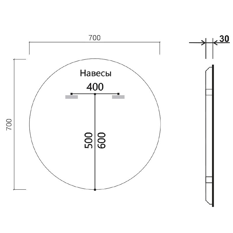 - Размеры (ШХВхГ): 700х700х30 мм.