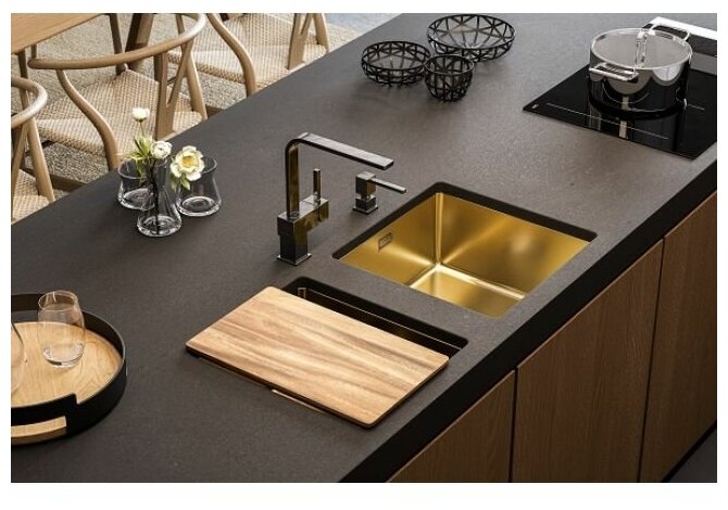 Что может быть проще и очевидней в качестве кухонного аксессуара, чем разделочная доска. Многие еще помнят как дарили куски фанеры с выжженым зайчиком или поздравлением своим родителям или бабушкам после уроков труда на 8 марта. Но прогресс, как и представления о прекрасном не стоят на месте. Высококачественная, специальным образом обработанная древесина (береза или орех), точно подходящая по размерам для конкретной серии кухонных моек. Разделочная деревянная доска от ALVEUS станет не только полезным и функциональным, но и очень красивым аксессуаром на Вашей кухне. Обратите внимание на размер доски, она должна совпадать с внутренними размерами чаши кухонной мойки.