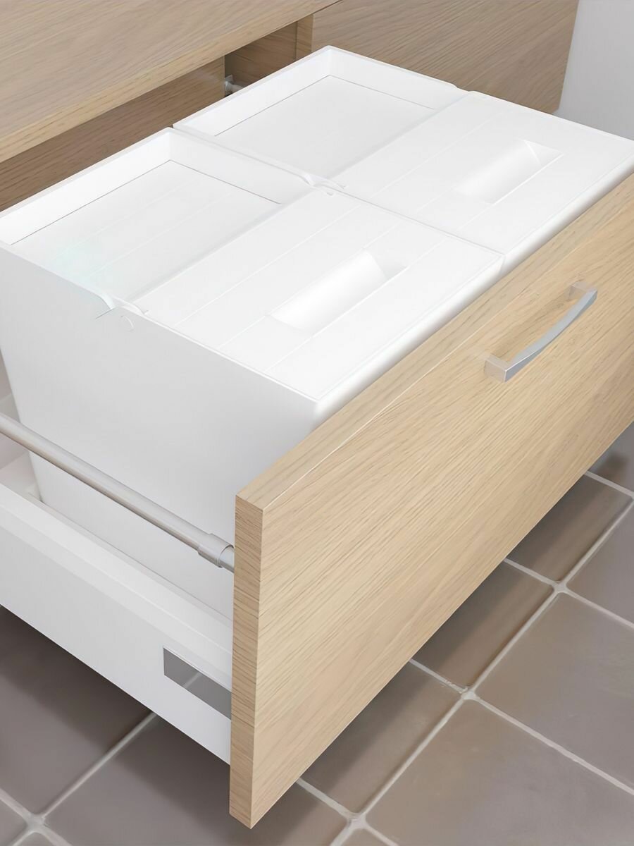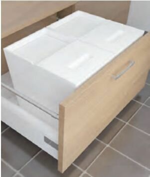 Система сортировки ALBIO от ALVEUS, может быть использована и как система для сортировки мусора, так и как мини-кладовая, позволяет хранить различные виды овощей в однном месте, всегда под рукой. Подходит для организации пространства под кухонной мойкой Экологически чистый материал (пищевой пластик) системы обеспечивает безопасное хранение продуктов питания. Раздельный сбор мусора насущная необходимость для больших городов, система сортировки мусора от ALVEUS позволяет решить эту задачу. Вёдро легко снимается Высококачественные направляющие полного выдвижения обеспечивают много лет бесперебойной работы Гарантия 2 года.Цвет: белый. Нагрузка до 40 кг.Объем ведра: 32 литра