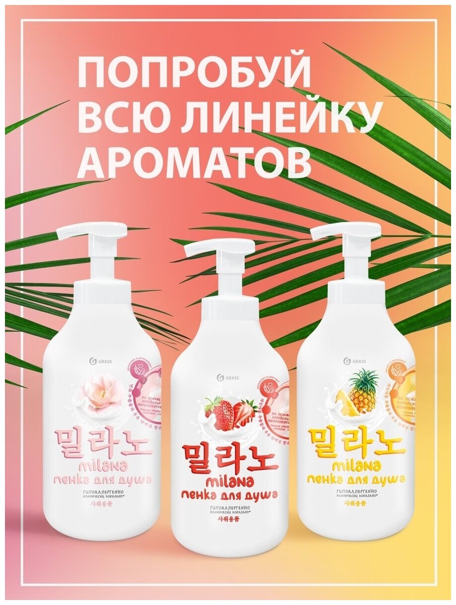 Гель-пенка для душа Grass Milana «Клубника» 0.75 л