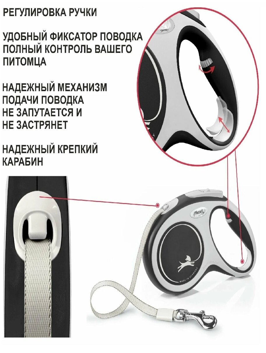 Ленточный поводок-рулетка flexi (Флекси) New Comfort M для собак до 25 кг.