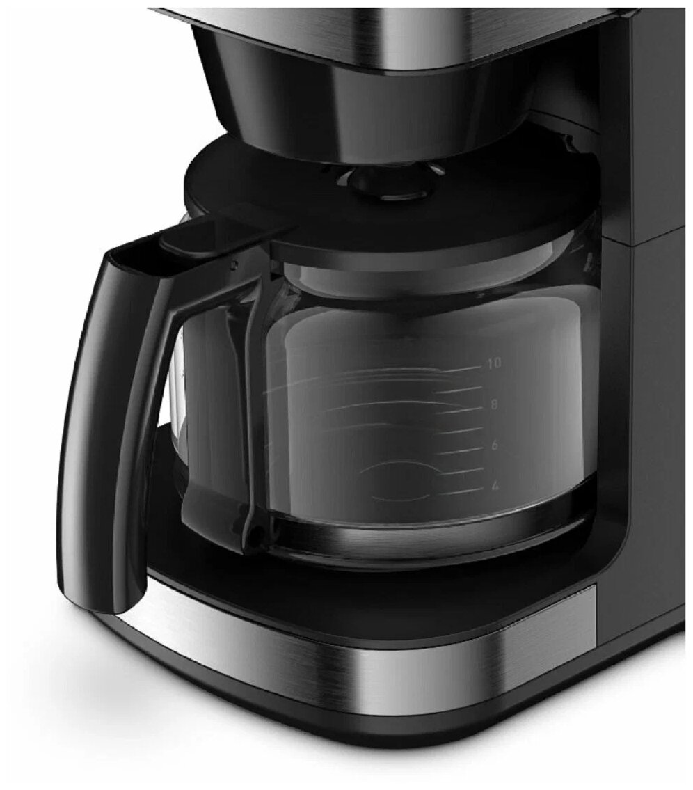 Кофеварка капельная Krups Grind Aroma KM832810 черный/серебристый, мощность 1000Вт, используется зерновой/молотый кофе, объем резервуара для кофе 1.25л (1510001803)