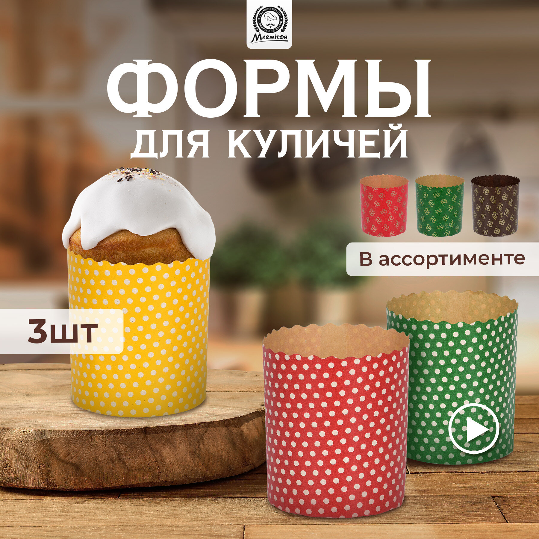 Сервис сравнения цен СкидкаГИД предлагает сравнить цены на товар «Набор бумажных форм для выпечки куличей MARMITON Пасхальный d70*85мм 3шт (11367) (размер: 7х8,5)»