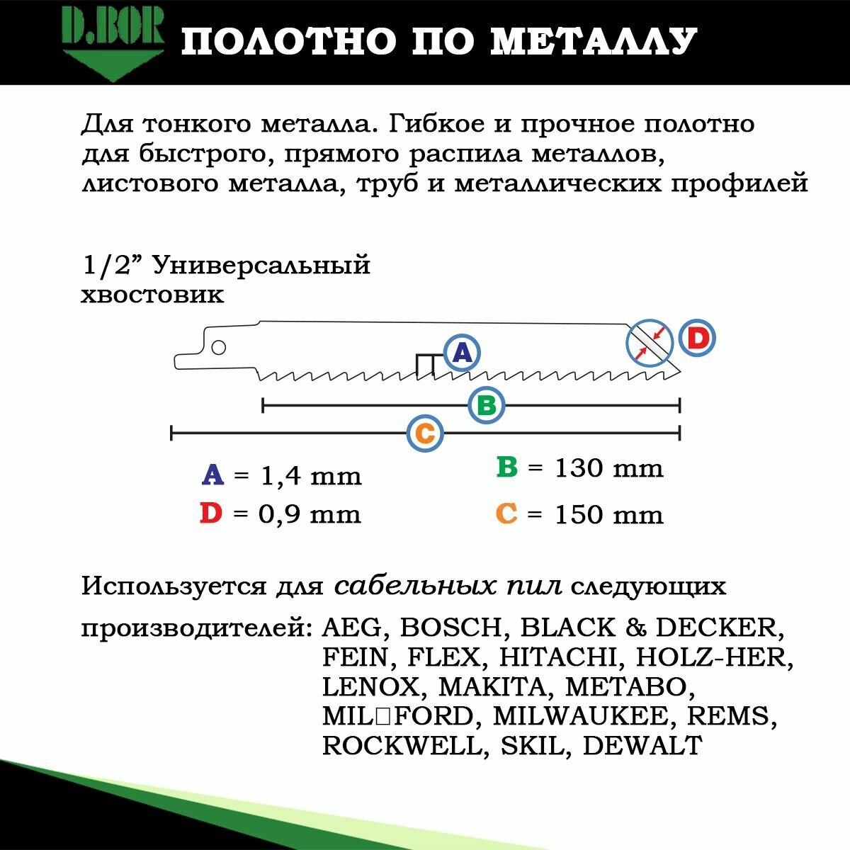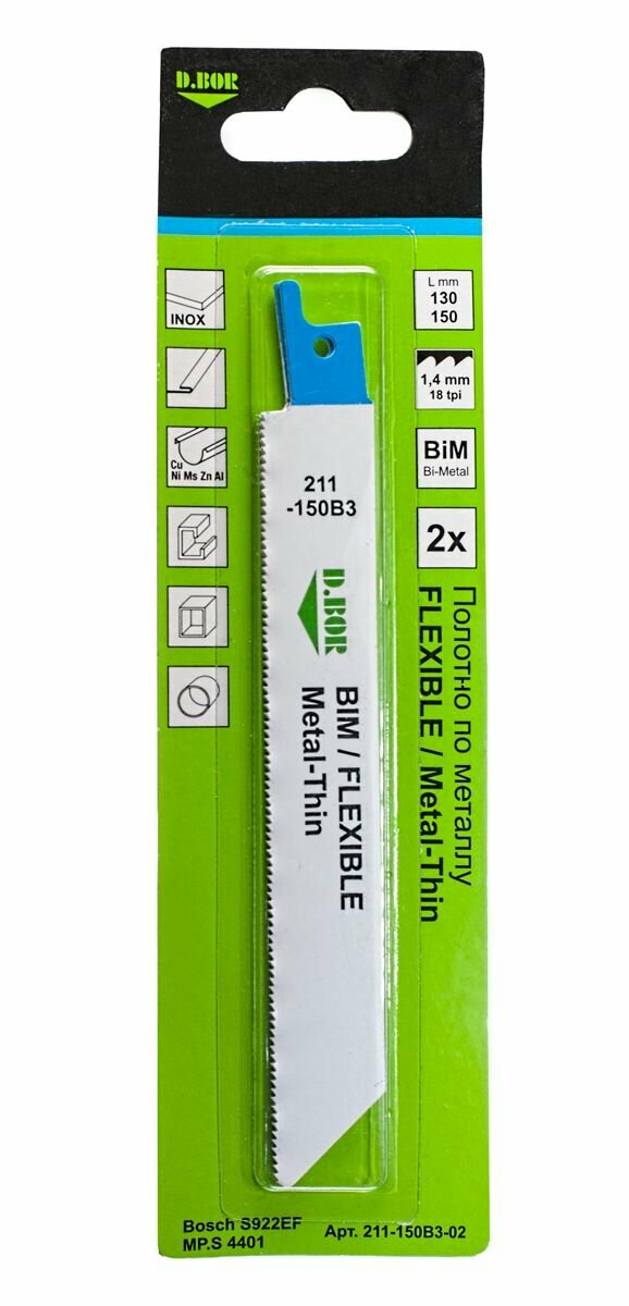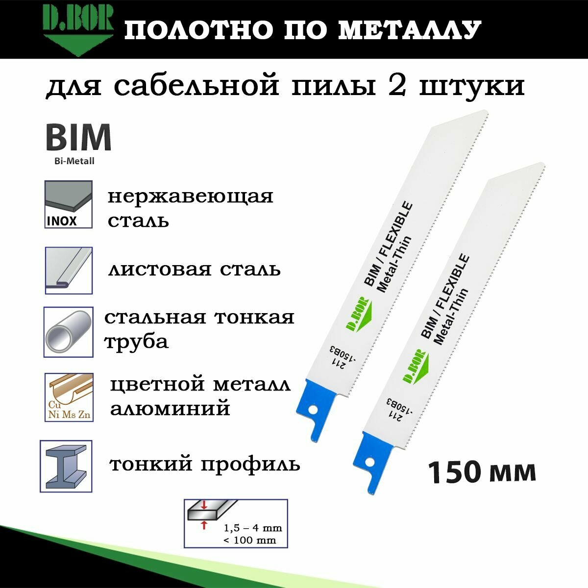 Полотно для сабельной пилы по металлу d.Bor BIM/FLEXIBLE/Metal-Thin 130/150*14мм (S922EF) (2шт) D-211-150B3-02