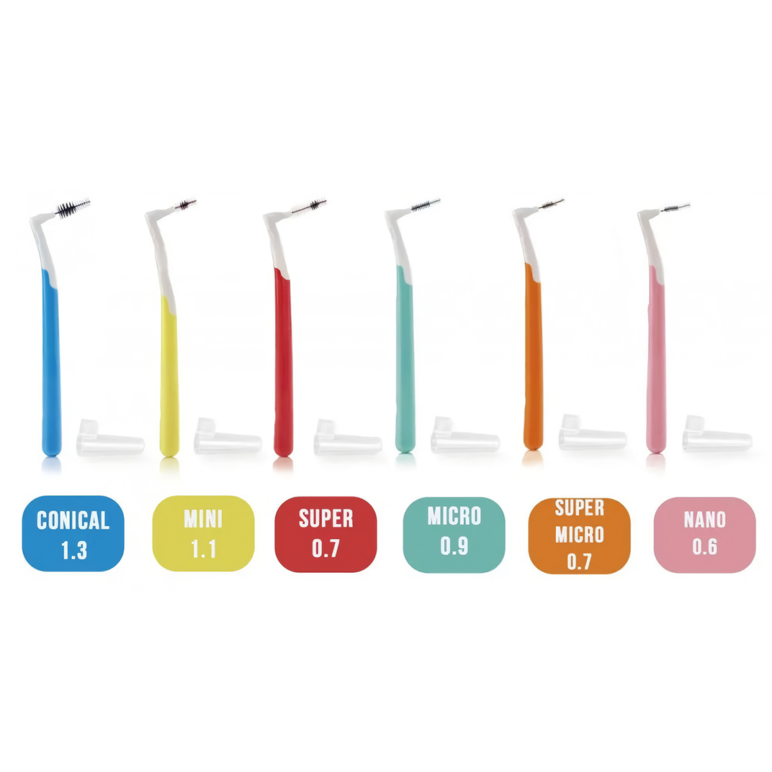 Набор Interprox Plus Micro состоит из 6 ершиков с диаметром стержня 0,56 мм и диаметром щетинок 2,4 мм. У каждого ершика есть защитный колпачок. Рекомендованы для межзубных промежутков размером 0,9-1,0 мм. Ручка и головка ершиков расположены под углом 90°, что облегчает процесс чистки. Щетинки, изготовленные из нейлона Tynex®, двухцветные: черные щетинки показывают удаленный зубной налет, белые - кровоточивость десен. Гибкая каркасная проволока покрыта полиуретаном, поэтому не царапает эмаль и десна.Межзубные ершики помогают удалить налет, уменьшить кровоточивость десен и предотвратить неприятный запах изо рта. Подходят для очистки имплантатов и брекет-систем.