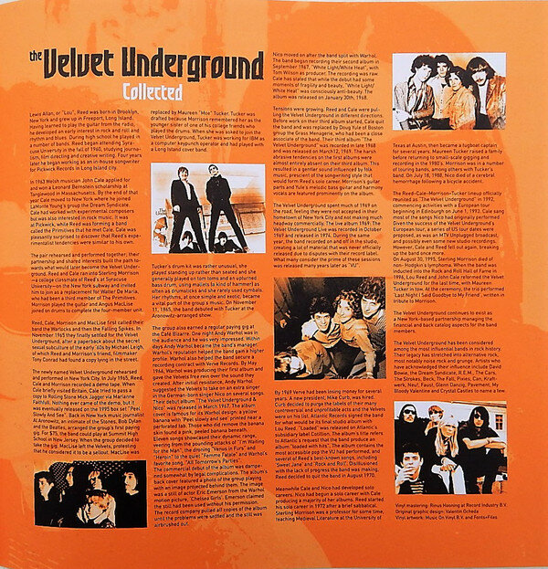 The Velvet Underground – Collected (Compilation) 2LPКомпиляция лучших композиций культовой американской рок-группы The Velvet Underground в рамках серии Collected. The Velvet Underground — легендарная американская рок-группа, образованная в Нью-Йорке в 1964 году. Первоначальный состояла из певца и гитариста Лу Рида, мульти-инструменталиста Джона Кейла, гитариста Стерлинга Моррисона и барабанщика Ангуса Маклиза. В 1965 году Маклиза заменил Мо Такер, который играл на большинстве записей группы. Их интеграция рока и авангарда не принесла большого коммерческого успеха за время существования группы, но теперь они признаны одной из самых влиятельных групп в роке, андеграунде, экспериментальной и альтернативной музыке. Провокационная тематика группы, музыкальные эксперименты и часто нигилистические взгляды также оказали влияние на развитие панк-рока и музыки новой волны. Первоначально группа выступала под разными именами, прежде чем в 1965 году остановилась на Velvet Underground. В 1966 году их менеджером стал культовый Энди Уорхол, и они выступали в качестве домашней группы в арт-коллективе Уорхола, известном как «Фабрика», и в путешествующем мультимедиа шоу Уорхола Exploding Plastic Inevitable с 1966 по 1967 год. Их дебютный альбом «The Velvet Underground & Nico» (с немецкой певицей и моделью Нико) был выпущен в 1967 году и имел низкие продажи, но с тех пор получил широкое признание аудитории. Они выпустили еще три альбома: «White Light / White Heat» (1968), «The Velvet Underground» (1969) и «Loaded» (1970), причем Дуг Юл заменил Кейла в последних двух релизах, и ни один из них не оправдал ожиданий звукозаписывающих компаний или Рида, лидера группы. Группа функционально распалась в начале 1970-х, когда все, кроме Юла, покинули группу. Неудавшийся тур по Великобритании с Юлом в качестве лидера группы и с новыми музыкантами последовал в 1973 году, а последний альбом, выпущенный от имени группы, «Squeeze» (1973), состоящий в основном из Юла с несколькими сессионными музыкантами, ознаменовал конец проекта. Все участники продолжали сотрудничать друг с другом в сольных работах на протяжении 1970-х и 1980-х годов, а в 1985 году был выпущен ретроспективный «раритетный» альбом «VU». Полное воссоединение группы произошло в начале 1990-х годов. Они отыграли серию хорошо принятых концертов в 1993 году и выпустил концертный альбом «Live MCMXCIII». После смерти Моррисона в 1995 году оставшиеся трое участников отыграли вместе одно выступление на церемонии введения в Зал славы рок-н-ролла в 1996 году, когда группа в последний раз выступала вместе. В 2004 году Velvet Underground заняли 19-е место в списке Rolling Stone «100 величайших артистов всех времен». The New York Times писала, что Velvet Underground была «возможно, самой влиятельной американской рок-группой нашего времени». TracklistA1. I'm Waiting For The Man A2. Venus In Furs A3. All Tomorrow's Parties A4. There She Goes Again A5. Heroin A6. Femme Fatale .
