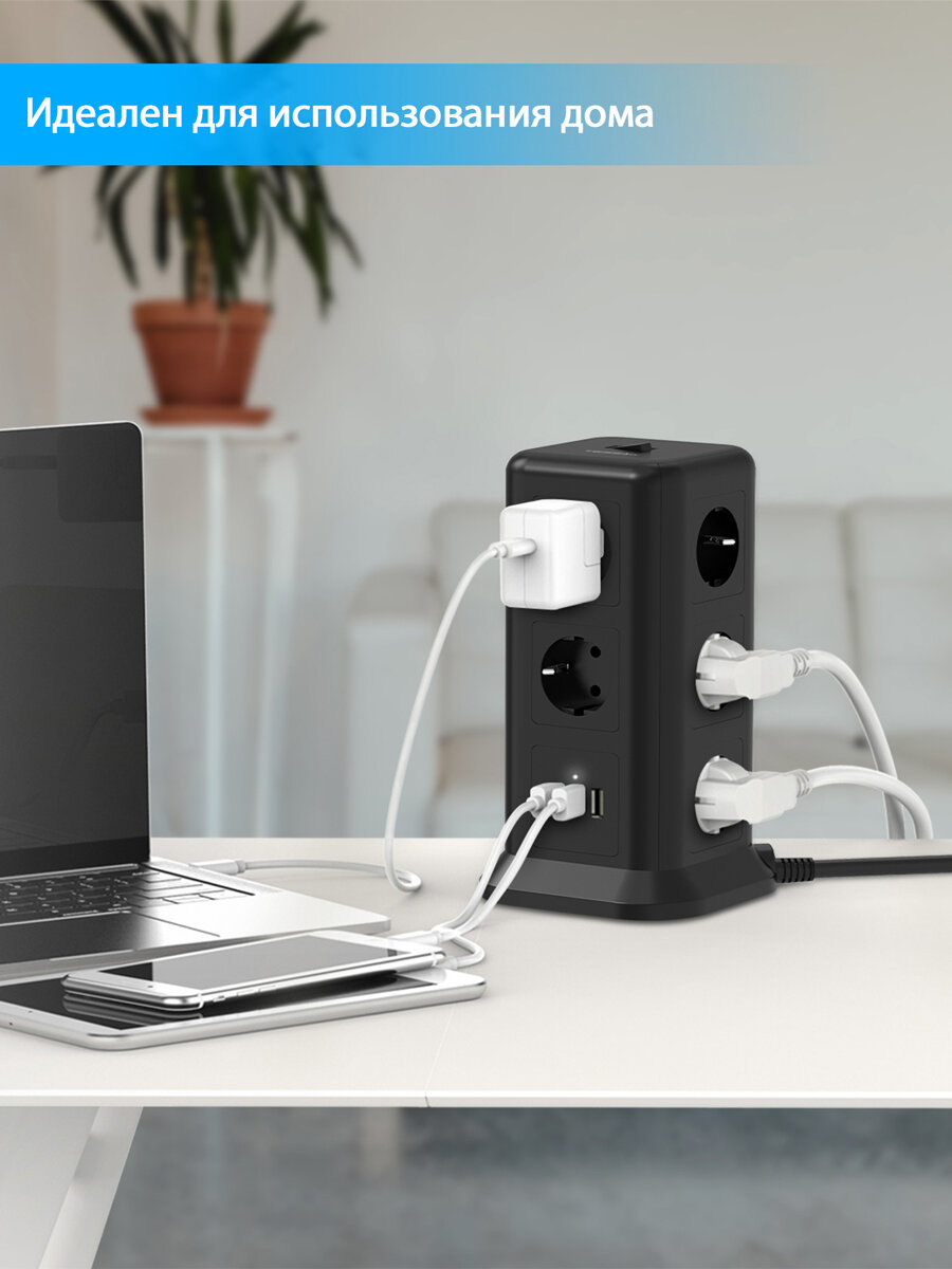 - 11 евророзеток, 3 USB портов.