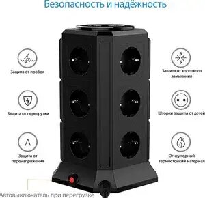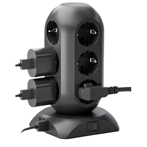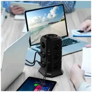 Сетевой фильтр TESSAN 12 евророзеток 220В и 3 USB и кн. питания 3600Вт до 16А кабе TPS02-DE Black