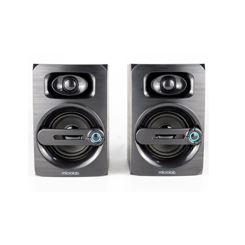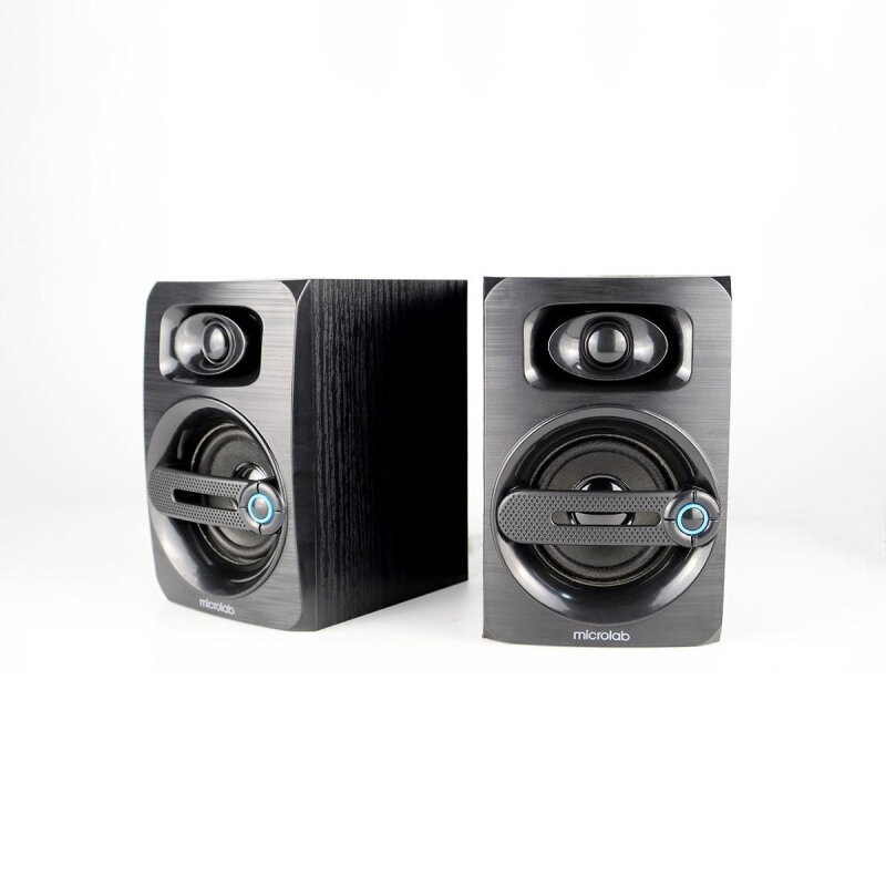 Широкополосный мембранный динамик и технологичный дизайн в глянцевом пластике – главные отличительные особенности данной акустической системы. Компактные размеры системы Microlab позволяют использовать систему не только на небольшом компьютерном столе, но и брать с собой в дорогу для быстрого подключения к ноутбуку. Для устойчивости и снижения вибрации в нижней части корпуса имеются небольшие прорезиненные вставки. Несмотря на свой размер, звучание этих колонок громкое и сбалансированное. Регулятор громкости расположен в верхней части корпуса активной колонки, что делает управление устройством более комфортным. Еще одно преимущество – питание через USB: отличный вариант для тех, кто ценит возможность быстрого подключения, высокое качество звука и заботится о своём кошельке.