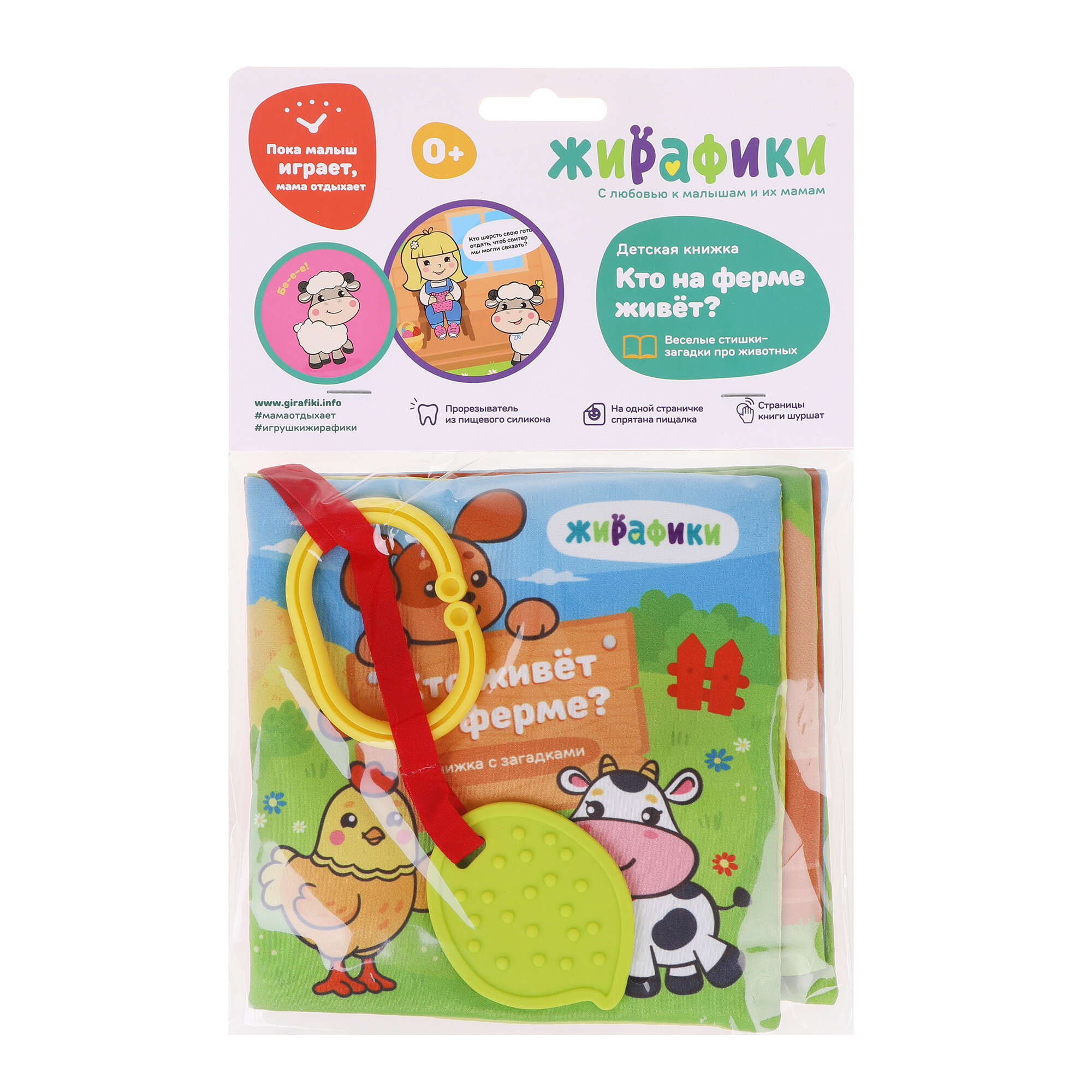 Книжка-подвеска мягкая Жирафики Кто на ферме живет 5х14х14 см
