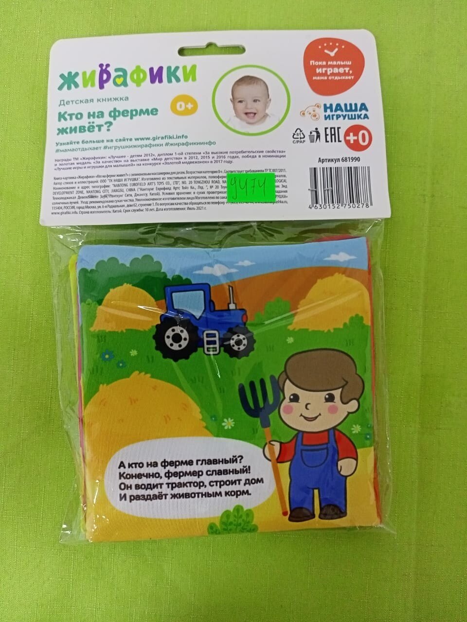На сегодняшний день товар «Книжка-подвеска мягкая Жирафики Кто на ферме живет 5х14х14 см» можно купить с кешбеком в 1 магазине: Яндекс.Маркет