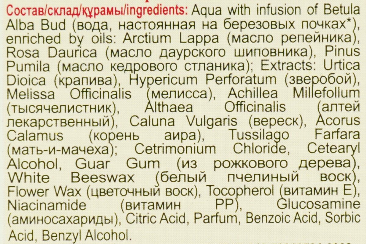 Пшеничная вода, входящая в состав бальзама, придает волосам естественный объем, а бережно собранные травы укрепляют их от корней до самых кончиков. Масла холодного отжима улучшают структуру волос, не утяжеляя их и облегчая расчесывание.
