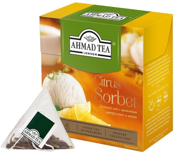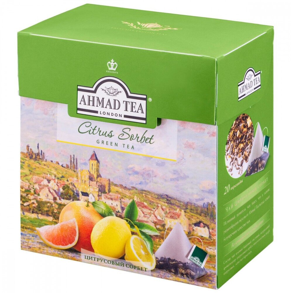 Чай зеленый Ahmad Tea Цитрусовый сорбет листовой в пирамидках 20 х 18 г
