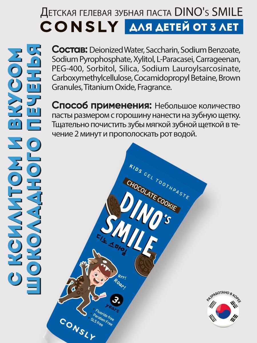 Детская гелевая зубная паста с ксилитом и восхитительным вкусом шоколадного печенья защищает детские зубы от кариеса, тщательно очищает, обладает антибактериальным эффектом, делает зубы крепче и здоровее.