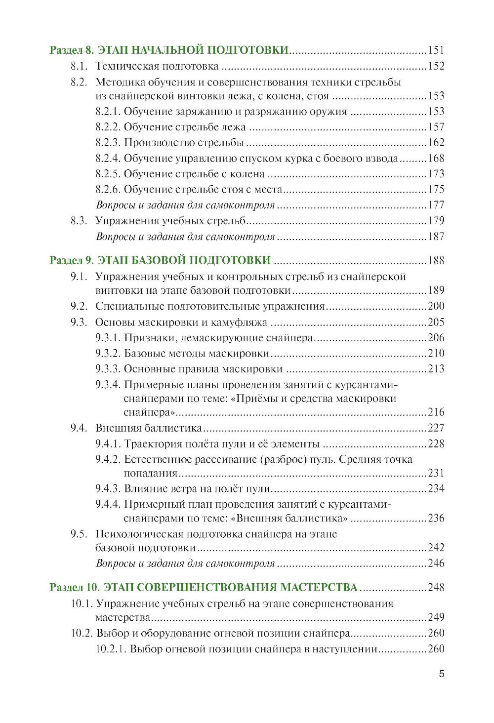 Рассматриваются вопросы современной подготовки снайперов на этапах начальной подготовки, базовой подготовки, совершенствования мастерства и специальной подготовки. Большое внимание уделено методике обучения стрельбе по движущимся целям, скоростной стрельбе с переносом огня по фронту и в глубину, прицельной стрельбе в условиях ограниченной видимости. Особое внимание уделено методике обучения меткой стрельбе ночью в условиях различных видов искусственного освещения целей.