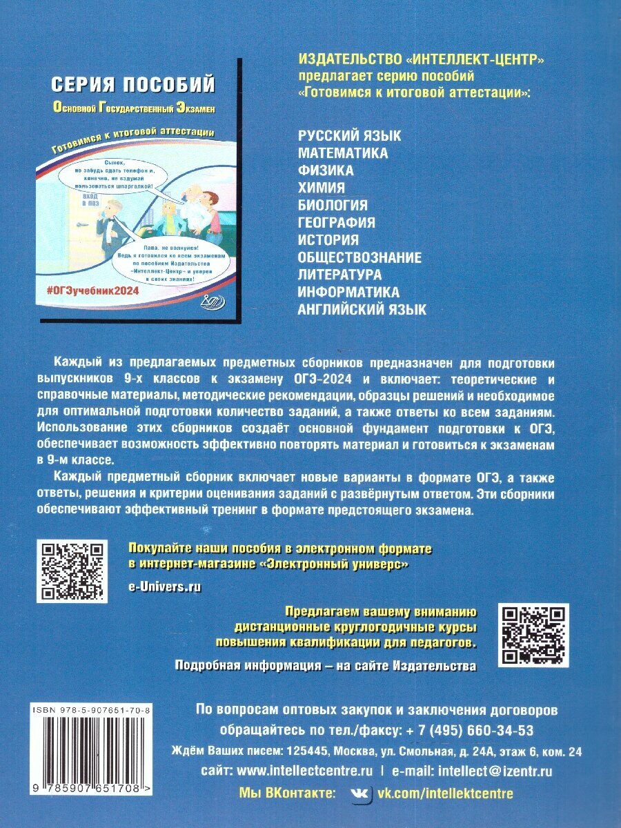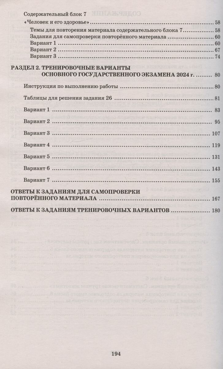 Данное пособие предназначено для подготовки учащихся 9 классов к государственной аттестации - основному государственному экзамену (ОГЭ) по биологии. Издание включает типовые задания по всем содержательным линиям экзаменационной работы, а также примерные варианты в формате ОГЭ 2024 года. Пособие поможет школьникам проверить свои знания и умения по предмету, а учителям - оценить степень достижения требований образовательных стандартов отдельными учащимися и обеспечить их целенаправленную подготовку к экзамену.