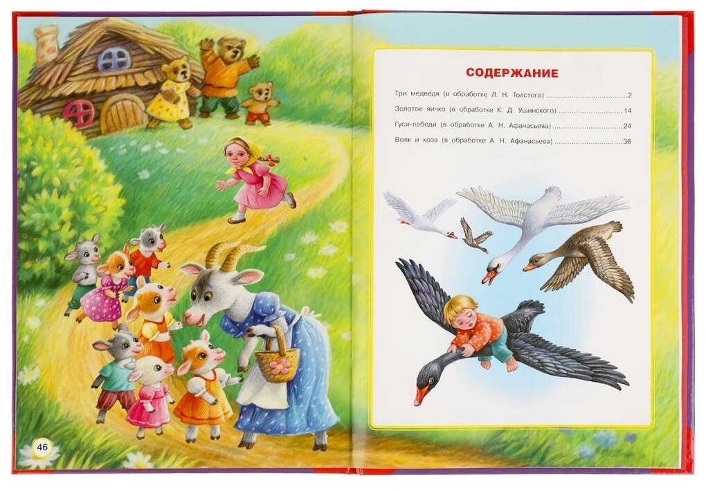 - 4 сказки: «Три медведя», «Золотое яичко», «Гуси-лебеди», «Волк и коза»