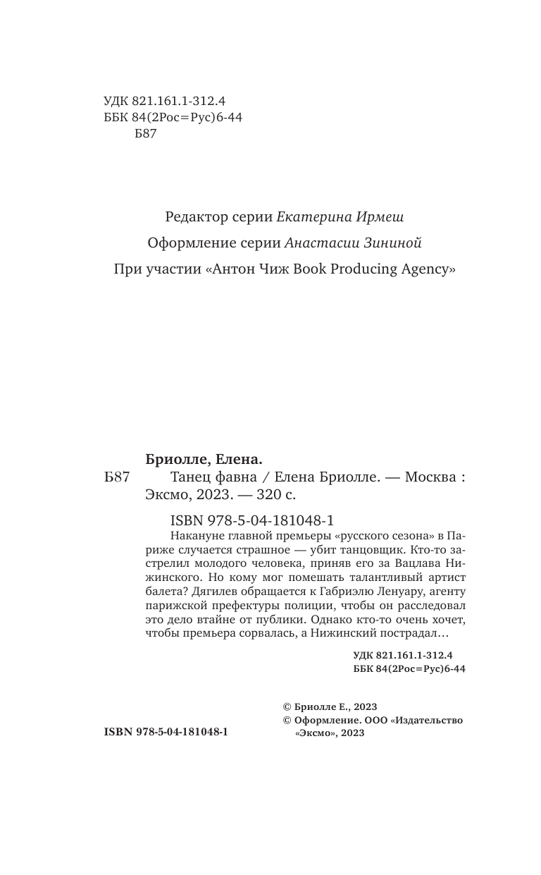 Книга: Танец фавна (Елена Бриолле); Эксмо, 2023