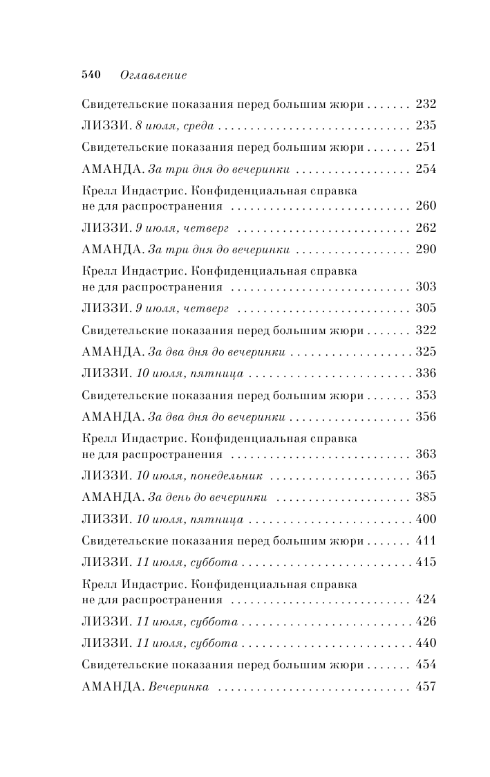 Давнего друга Лиззи обвиняют в убийстве жены, и только она, как юрист, может помочь ему избежать обвинения. Поддавшись его просьбам, она берется за дело, хотя по-настоящему не уверена в его невиновности и ненавидит работать с криминалом. Более того, у самой Лиззи есть пара мрачных секретов, о которых не должна знать общественность и которые могут всплыть, если она не будет осторожна. И чем больше Лиззи погружается в запутанную историю убийства, которое произошло после легкомысленной светской вечеринки, тем больше тревожных параллелей она проводит с собственной жизнью. Вскоре под угрозой оказываются ее репутация, карьера и отношения с мужем. Никому и ничему нельзя верить, Лиззи всегда это знала. Но раз за разом она совершает эту ошибку. «Захватывающая история, которая разворачивается с головокружительной скоростью». — Тейлор Дженкинс Рейд, автор бестселлера «Семь мужей Эвелин Хьюго» «Персонажи Кимберли Маккрейт имеют внешне идеальную жизнь, однако их величайшее мастерство — сокрытие за блестящими фасадами адюльтеров, запрещенных веществ и личного и финансового краха…» — New York Times Book Review «Восхитительная история с интригами, предательствами и убийством». — People