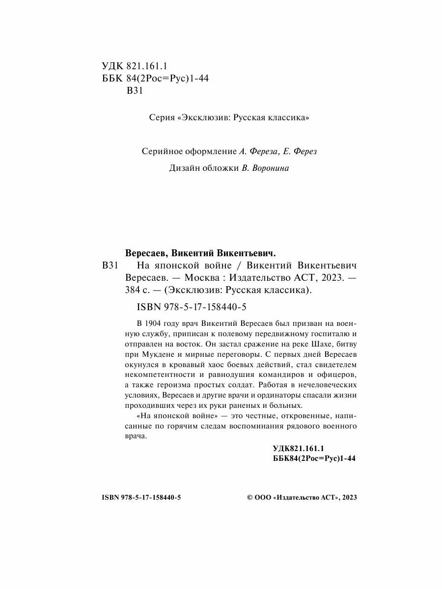 Книга: На японской войне (Вересаев Викентий Викентьевич); ИЗДАТЕЛЬСТВО "АСТ", 2023