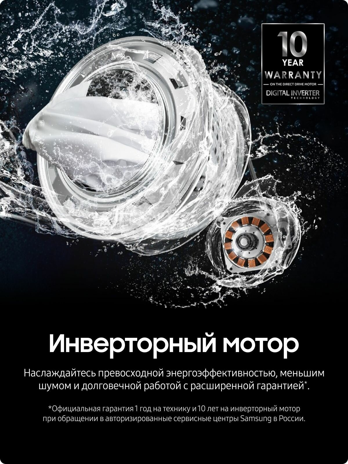 Благодаря генератору EcoBubble, одежда будет идеально отстирана даже при низкой температуре воды. Стиральная машина оснащена функцией пара, которая поможет освежить и дезинфицировать одежду, а инверторный мотор обеспечит снижение энергопотребления, уменьшение уровня шума и увеличение рабочего ресурса.