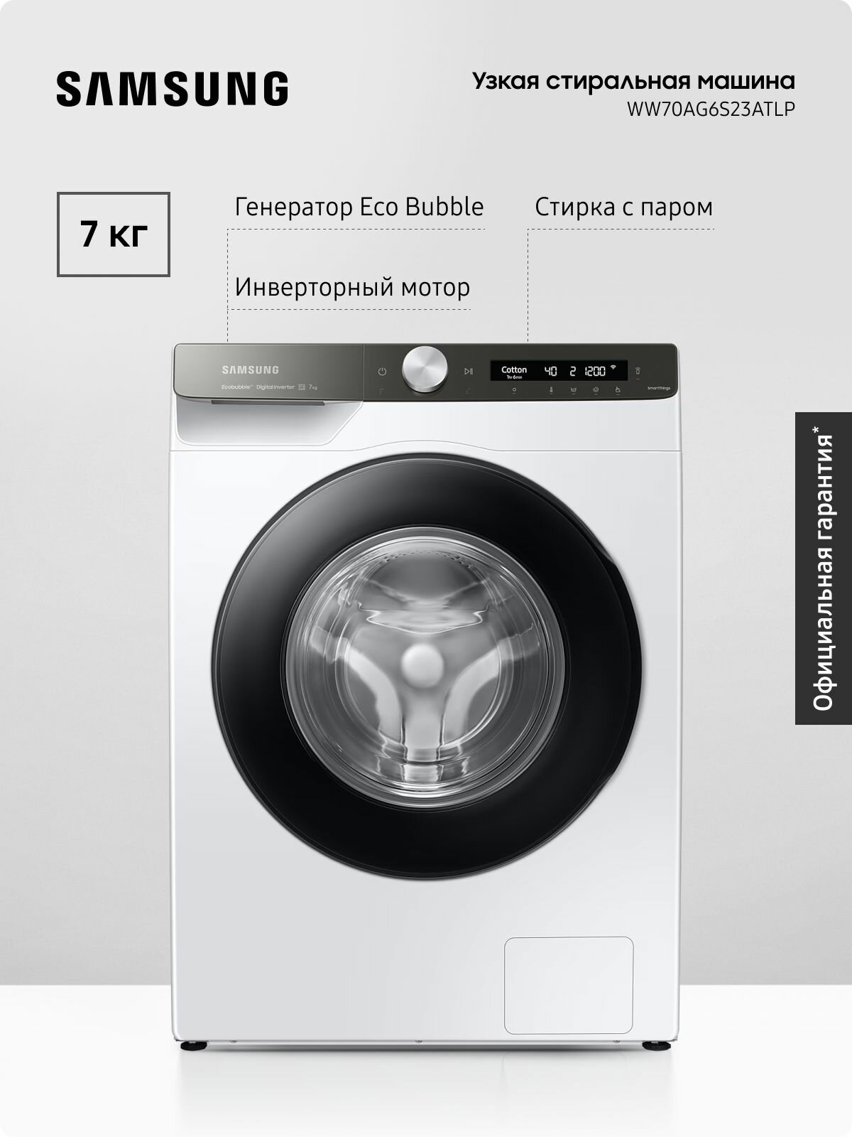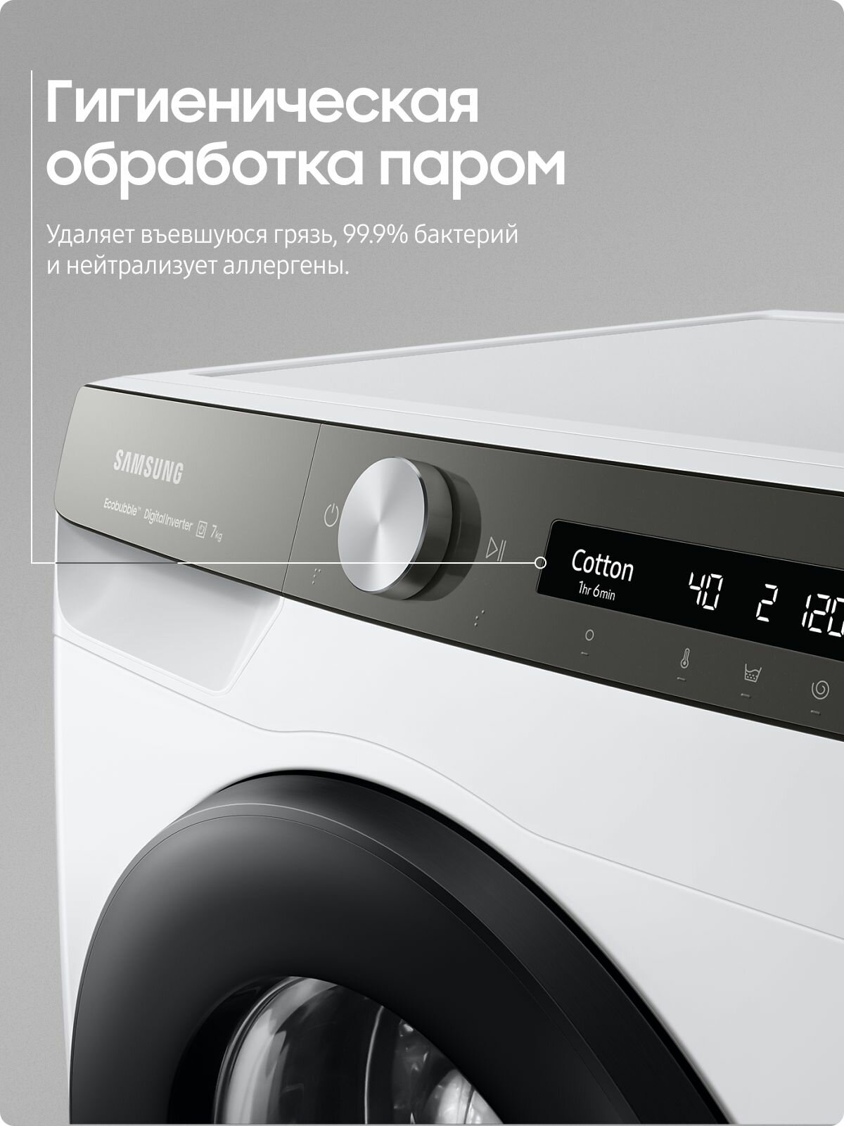 Стиральная машина Samsung белый корпус, белый люк, фронтальная загрузка до 7кг, максимальная скорость отжима 1200об/мин, класс энергопотребления A