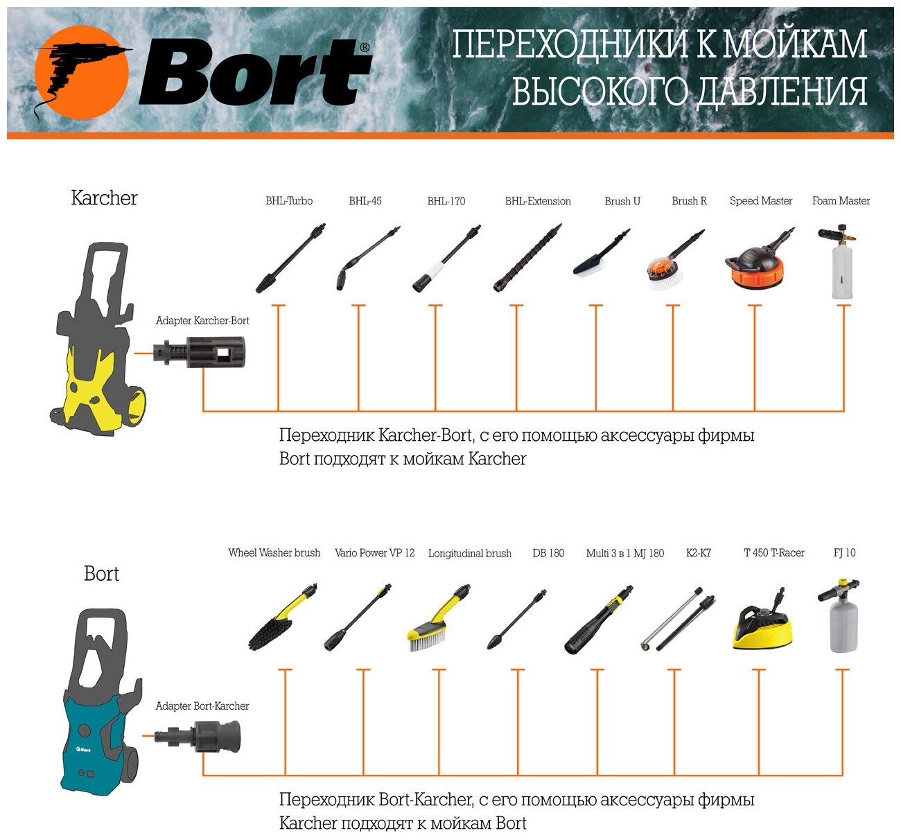 | Назначение | для моек высокого давления Bort BHR (кроме BHR-2200-Pro) |