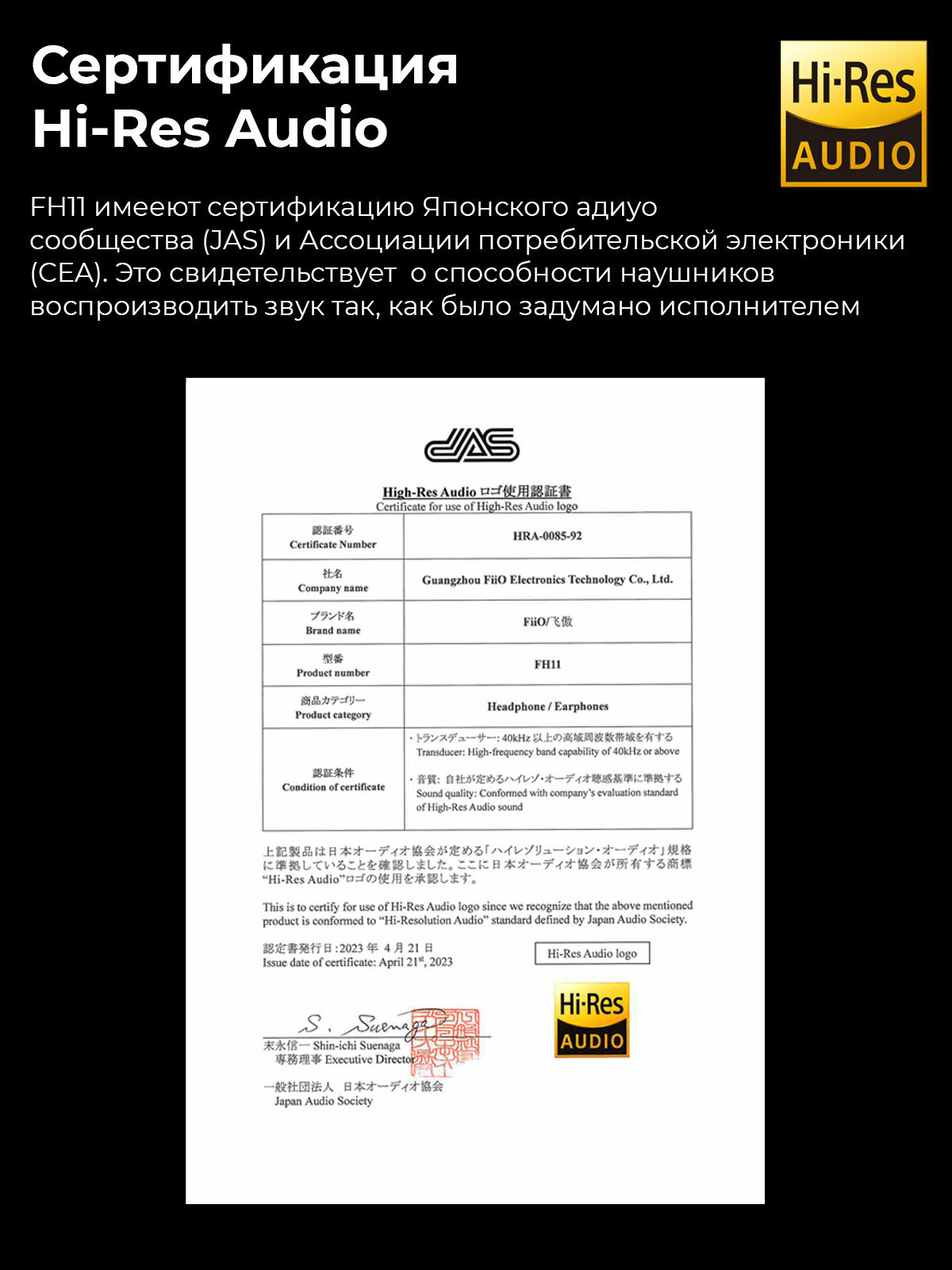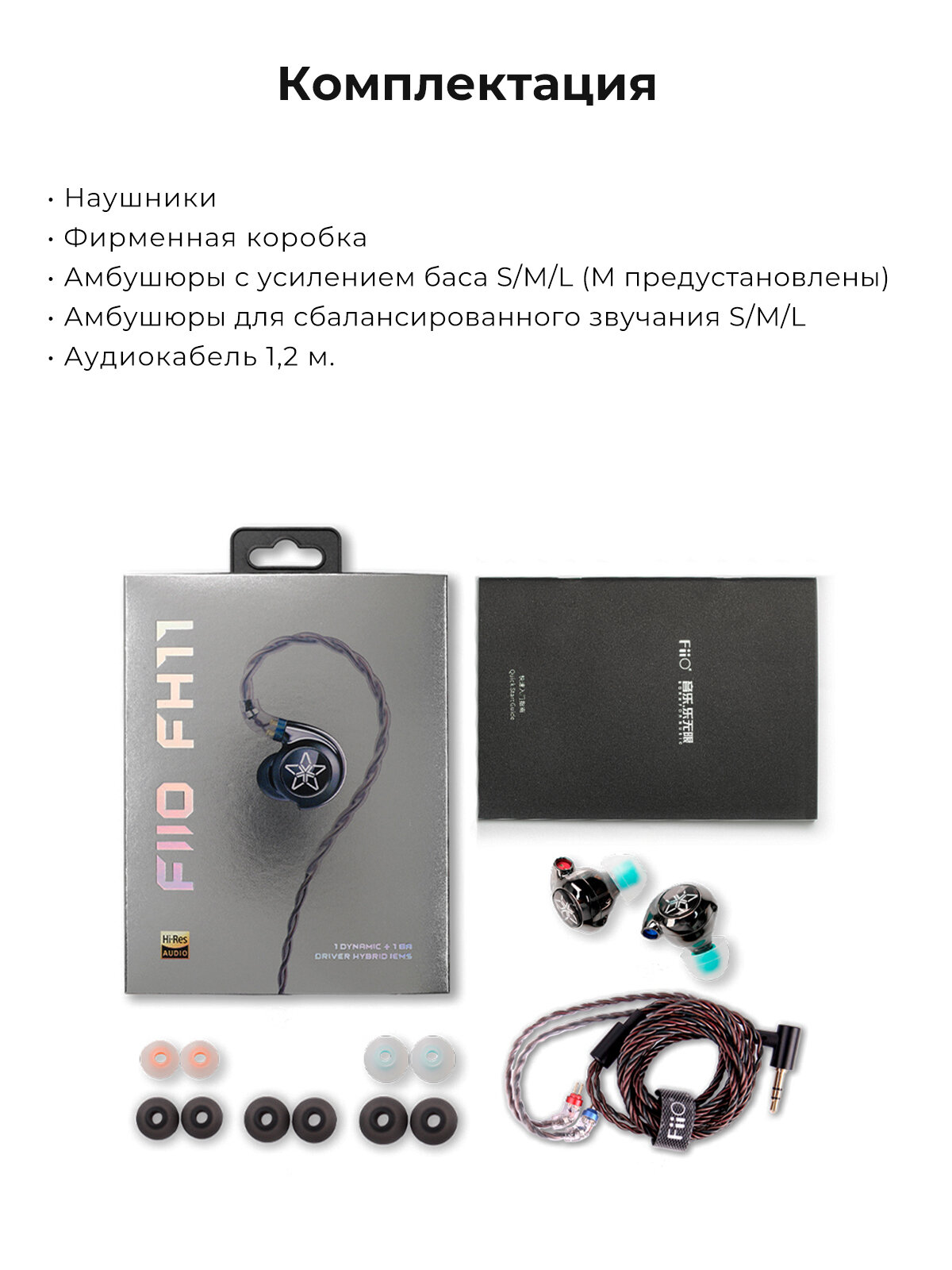 Наушники FIIO вставные 20 Гц - 20 кГц 24 Ом 111 дБ. FH11 black