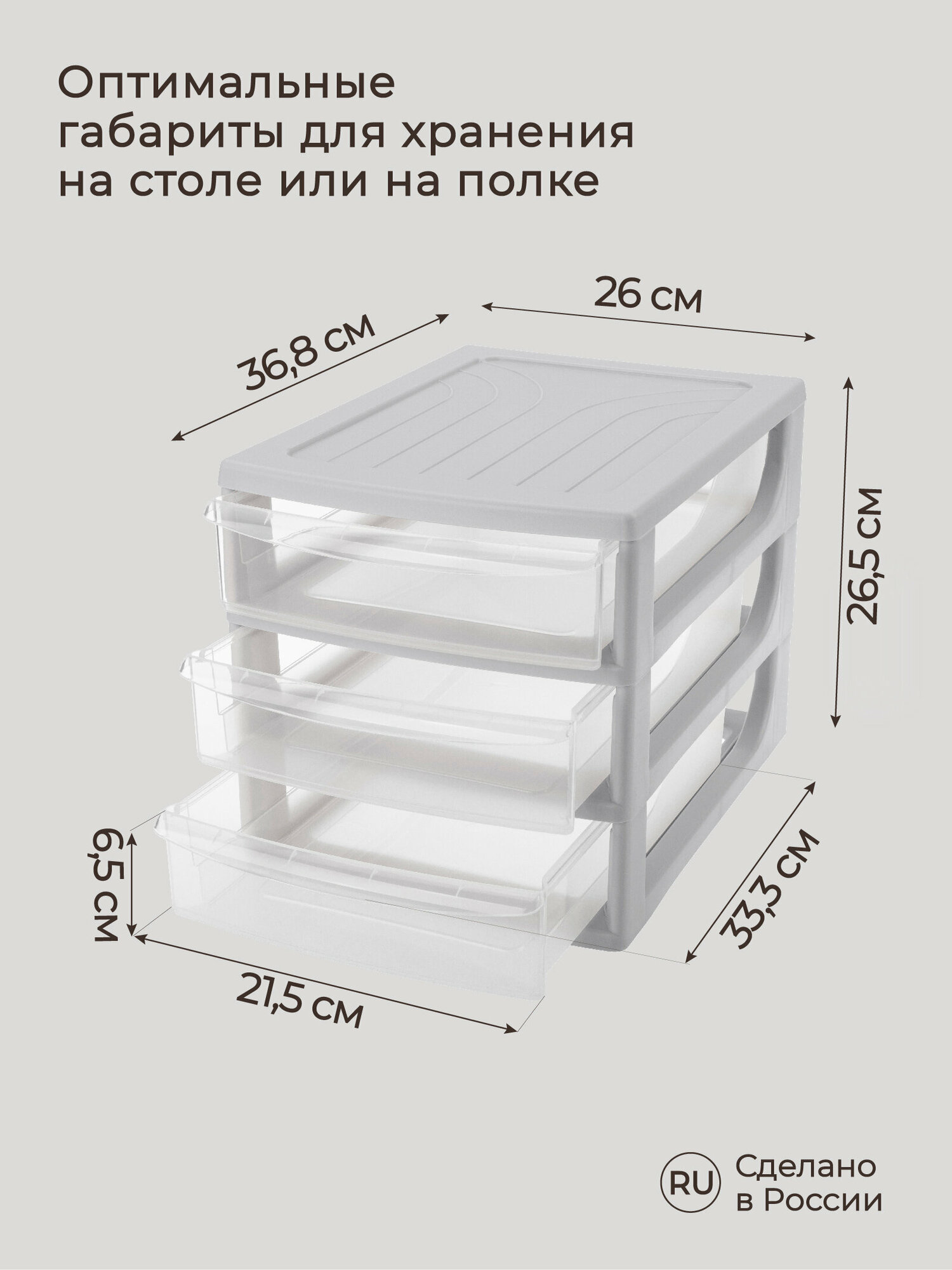 Сервис сравнения цен СкидкаГИД предлагает сравнить цены на товар «Органайзер Бытпласт 3 ящика А5 26х368х265 см»