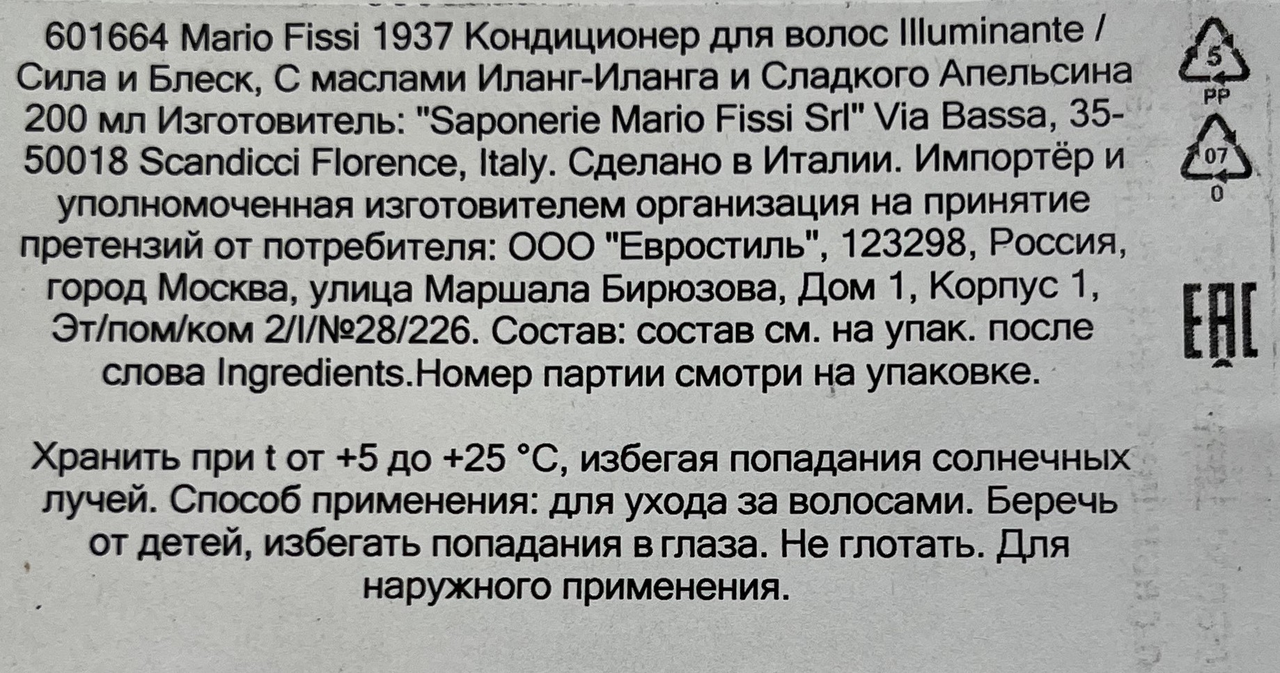Сервис сравнения цен СкидкаГИД предлагает сравнить цены на товар «Кондиционер для волос Mario Fissi 1937 Essenziale Сила и Блеск (70692)»