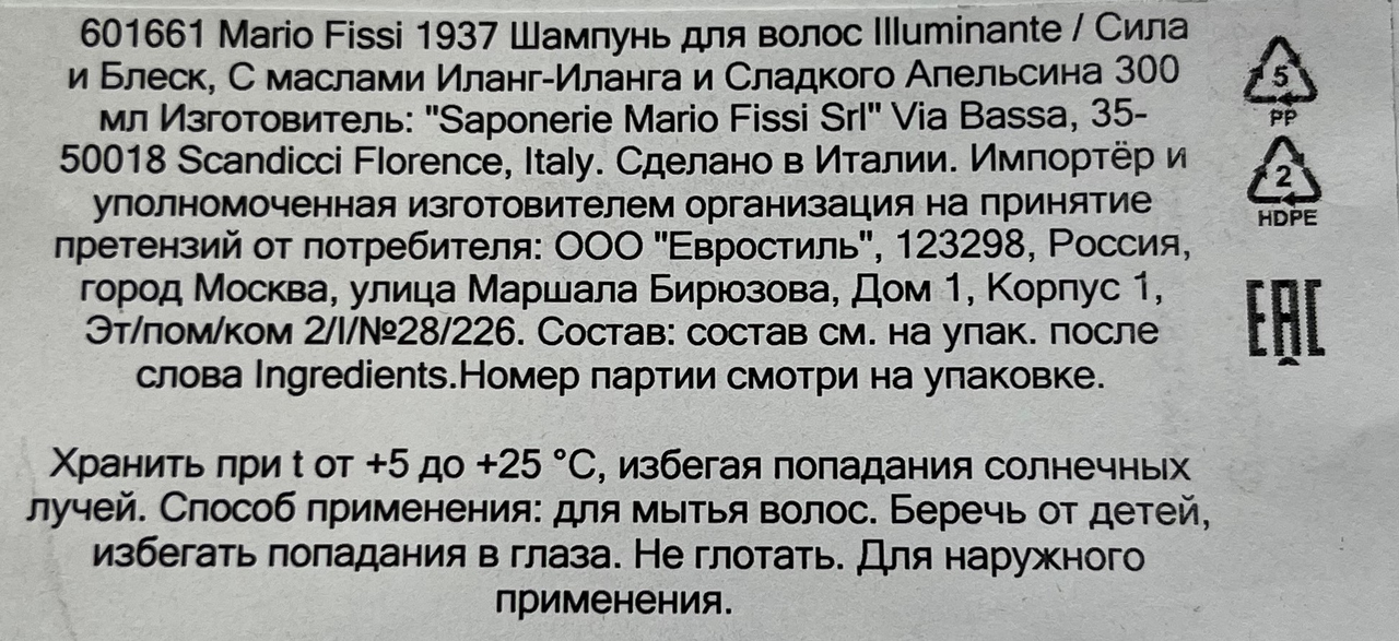Все средства итальянской компании Saponerie Mario Fissi 1937 имеют перерабатываемую упаковку, не содержат SLS, SLES, парабены, искусственные красители, консерванты, продукты животного происхождения, а также не тестируются на животных и не наносят вреда природе."