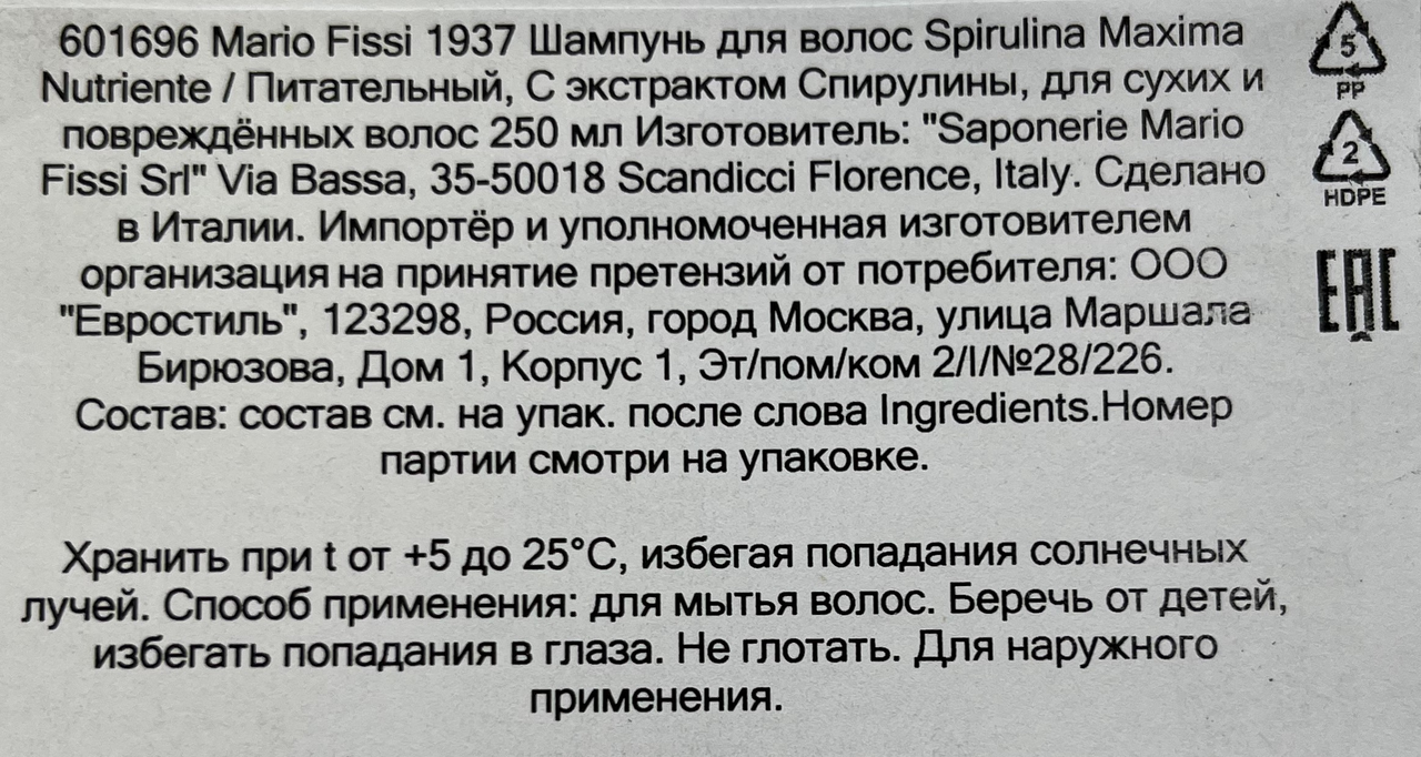 Сервис сравнения цен СкидкаГИД предлагает сравнить цены на товар «Шампунь Mario Fissi 1937 Funzioniale Питательный (70741)»