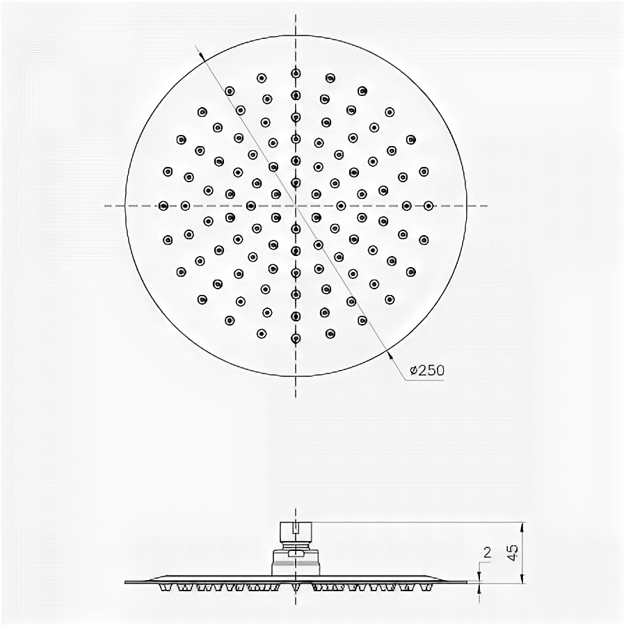 Верхний душ 1-функциональный. Функции: распыление, самоочищение. Размер: 250 мм. Цвет: черный. Преимущества: минимально возможная толщина изделия, система подсоса воздуха для снижения расхода, аэрации и смягчения потока воды