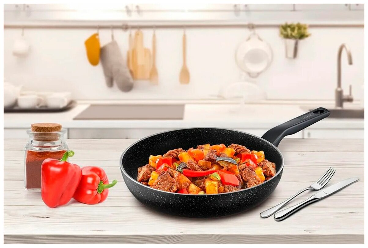 Сковорода Tefal Rock 04225124 черный, круглая, диаметр 24см, покрытие Titanium, ручка несъемная, крышка отсутствует (9100049220)