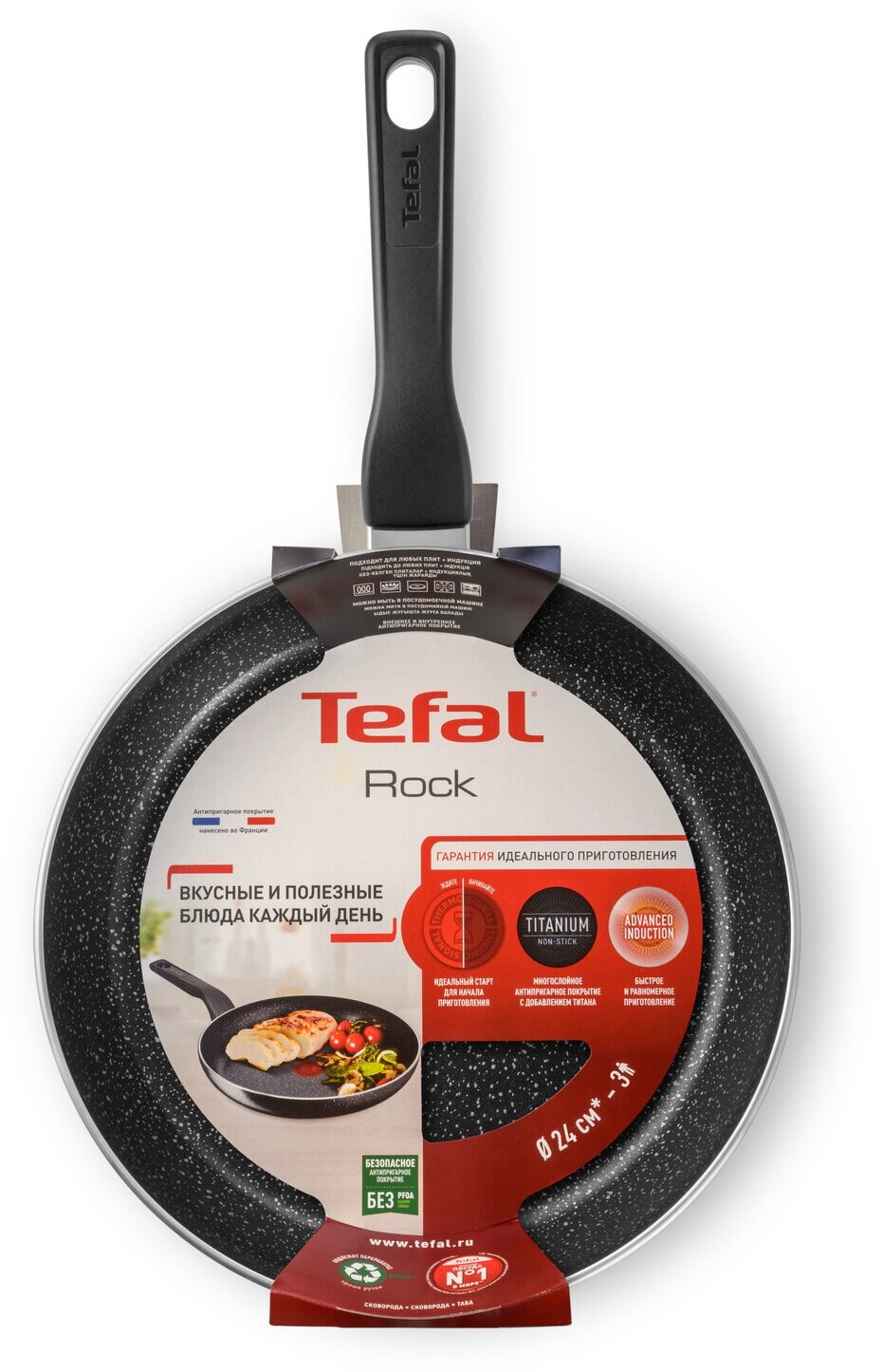 Сковорода Tefal Rock 04225124 24см черный Titanium покрытие без крышки (9100049220) коллекция Rock