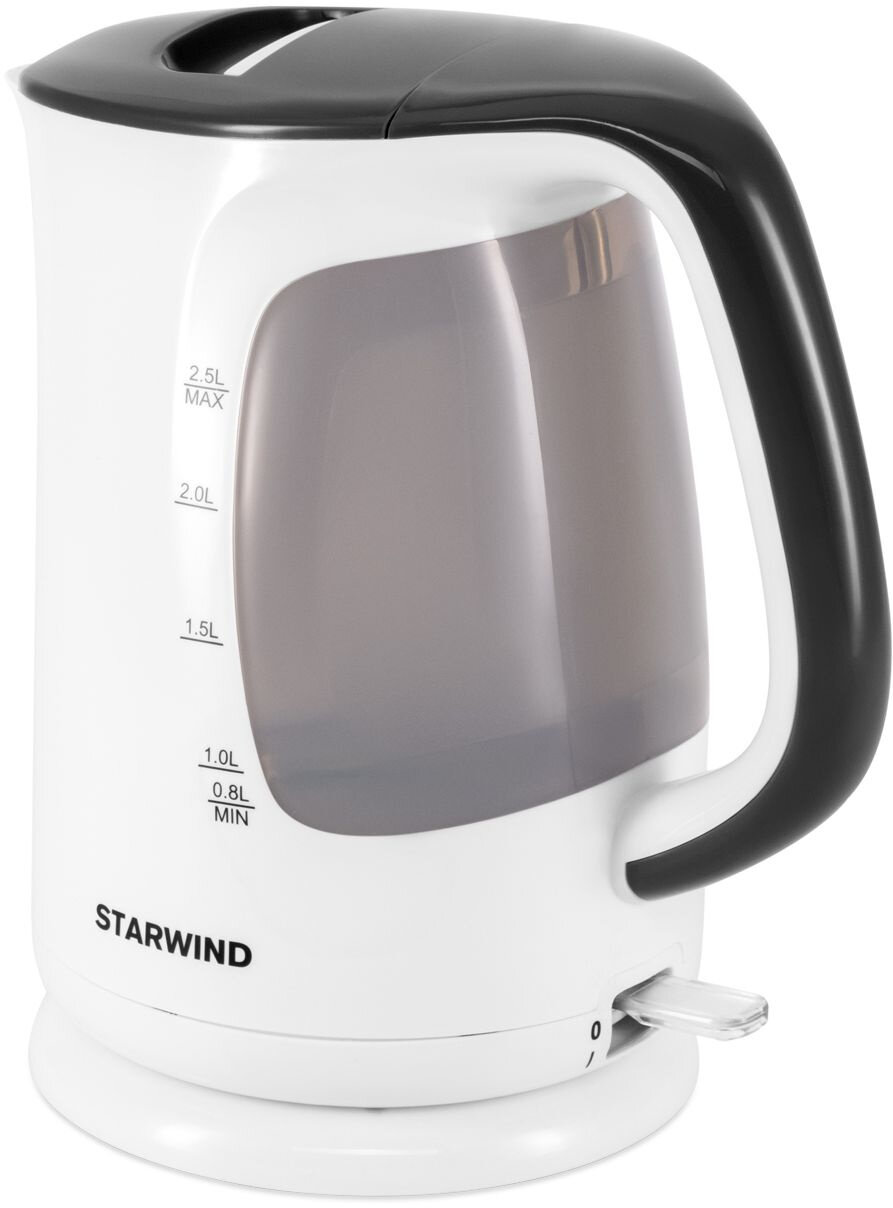 Чайник электрический Starwind SKG3025 белый/серый, объём 2.5л, мощность 2200Вт, материал корпуса: пластик