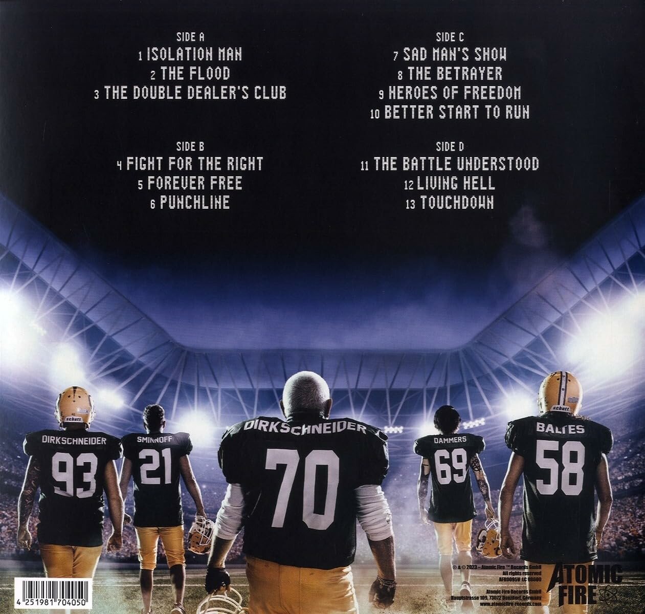 Состояние носителя: S. Состояние конверта: S. Touchdown. Виниловая пластинка . 2 lp A1 Isolation Man A2 The Flood A3 The Double Dealer's Club B4 Fight For The Right B5 Forever Free B6 Punchline C7 Sad Man's Show C8 The Betrayer C9 Heroes Of Freedom C10 Better Start To Run D11 The Battle Understood D12 Living Hell D13 Touchdown Тип носителя: Виниловая пластинка