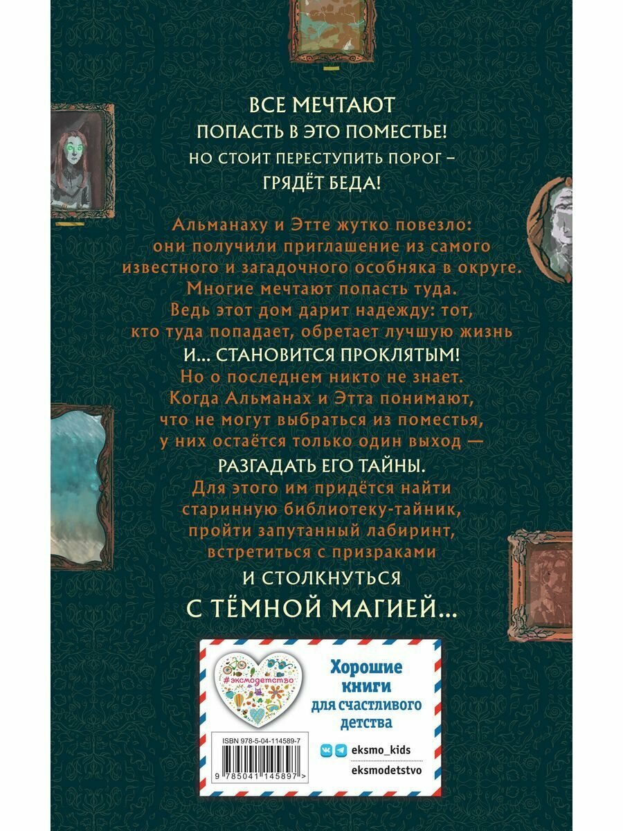 Получив приглашение из самого загадочного поместья в округе, Альманах и Этта отправляются навстречу лучшей жизни, но становятся жертвами древнего проклятия! Теперь дети рискуют никогда больше не покинуть стен этого странного дома… Чтобы отыскать путь к спасению и выбраться из ловушки, Альманаху и Этте придётся встретиться с призраками, раскрыть главную тайну особняка и побороть сильнейшее колдовство! Удастся ли детям спасти не только себя, но и других обитателей поместья?