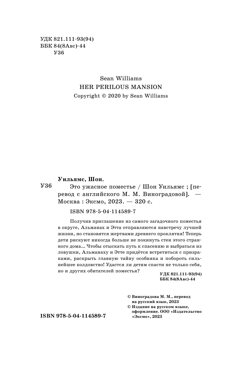 Книга: Это ужасное поместье (Вильямс Шон); ООО "Издательство "Эксмо", 2023