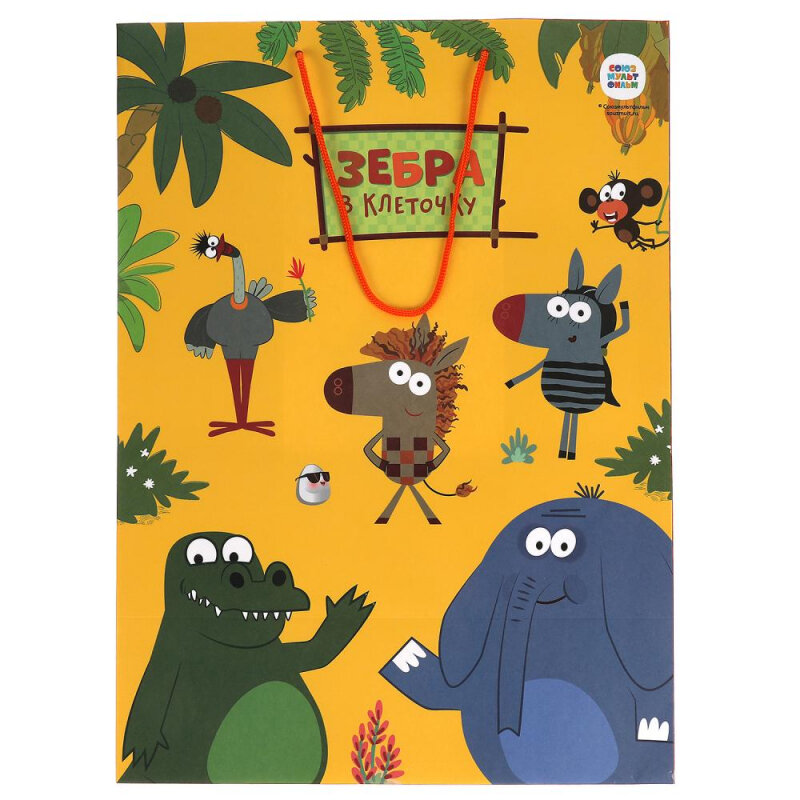 Подарочный пакет «Зебра в клеточку» ТМ «Играем вместе» станет отличным дополнением к вашему подарку и сделает его незабываемым:- крепкие ручки- эффектный дизайн- удобный размер- глянцевый материал- любимые героиПраздничный подарочный пакет с изображением персонажей популярного мультсериала станет ярким запоминающимся штрихом, изюминкой детского подарка, и принесёт радость предвкушения. Ему будет интересно заглянуть в него, чтобы узнать, что же приготовили родные или друзья на день рождения или на любой другой праздник.Размер пакета: 33 х 46 х 20 см.Материал: бумага мелованная.