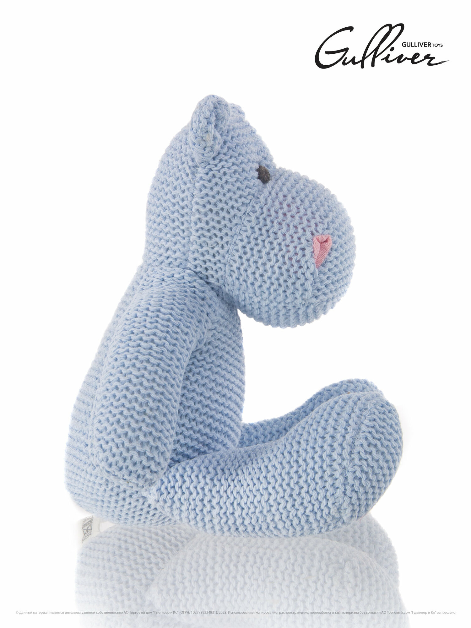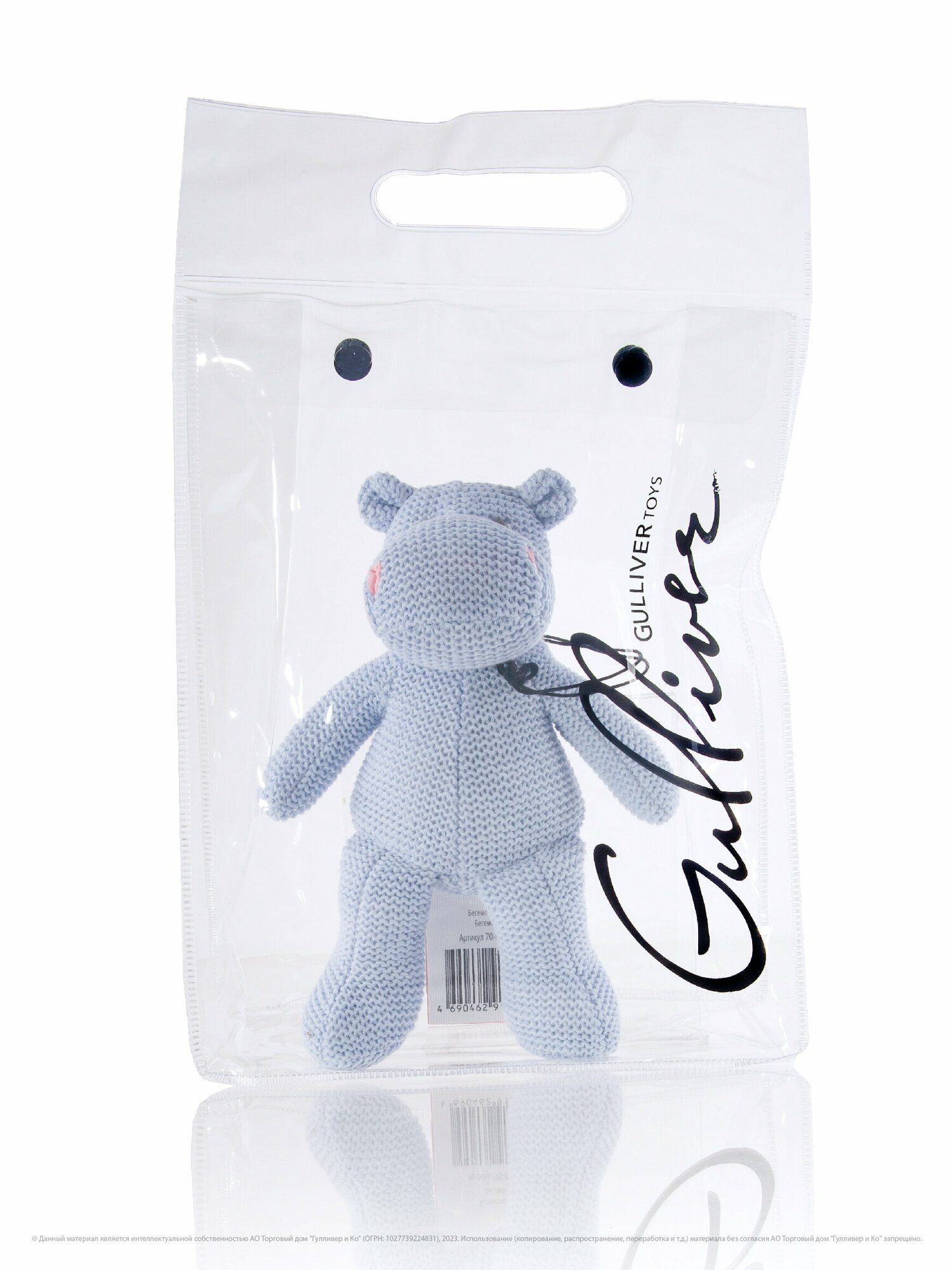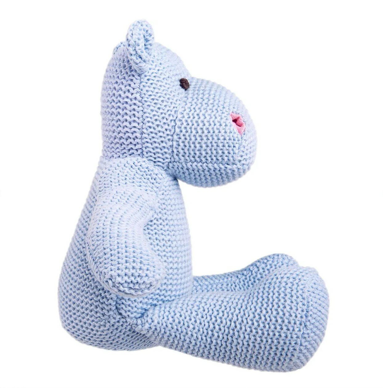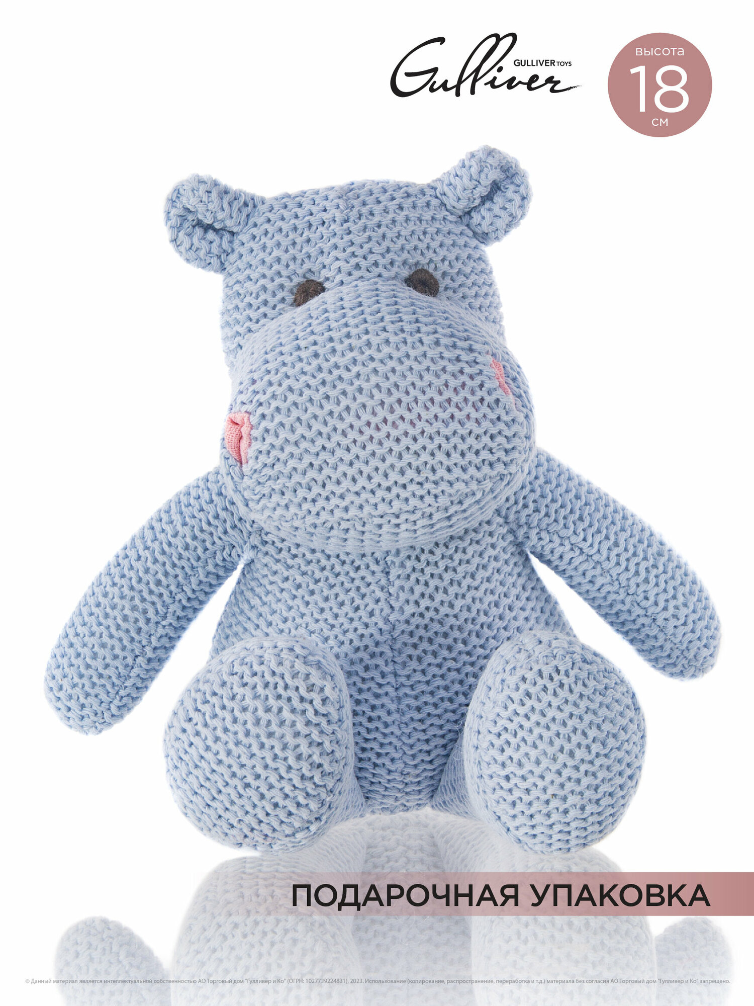 Маленький, аккуратный вязаный бегемотик Флинт из коллекции "Knit" такой милый, что трудно пройти мимо него. Бегемотик связан из качественной хлопковой нити и очень приятен на ощупь. Он красивого голубого цвета c вышитыми серыми глазками, а также забавными розовыми ноздрями. Такая мягкая игрушка может быть интерьерной, она привнесет уют и в детскую комнату и в гостиную, бегемота можно посадить на полку или комод и он не займет много места. Флинт очень понравится малышам, он маленький, компактный и безопасный, его можно взять на прогулку и он подойдет даже для самых маленьких. Игрушка упакована в плотную прозрачную подарочную сумочку с логотипом. Высота игрушки в полный рост - 18 см. Игрушку можно стирать в щадящем режиме при температуре не более 30' и низких оборотах. Игрушка изготовлена из безопасных гипоаллергенных материалов. Товар сертифицирован.