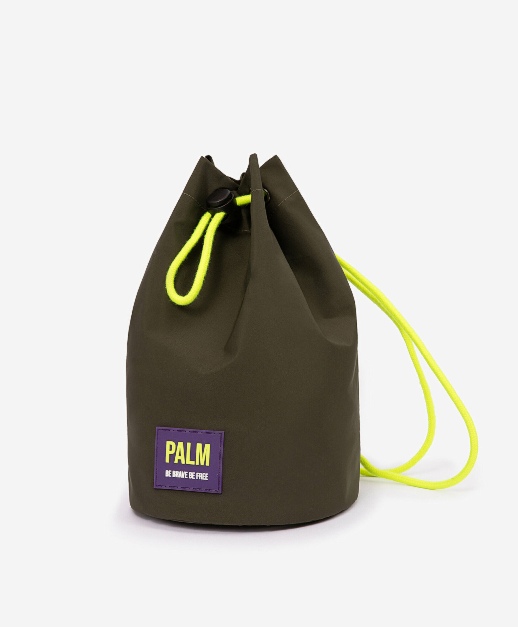 Сумка-рюкзак брутального цвета хаки выполнена из матовой влагостойкой плащовки без подкладки. Мешкообразная мягкая форма со свободным пространством внутри делает рюкзак удобным для сменной обуви, спортивной одежды, других предметов, лишенных жестких геометрических форм. Дизайн модели построен на ярких декоративных и функциональных элементах - приметах спортивного стиля. Крупный шрифтовой принт на дне рюкзака, видимый при эксплуатации, резиновый шеврон, корд-утяжка из неонового шнура, превращающийся в лямки, способствуют свежему восприятию вещи. Состав: 100% полиэстер