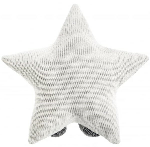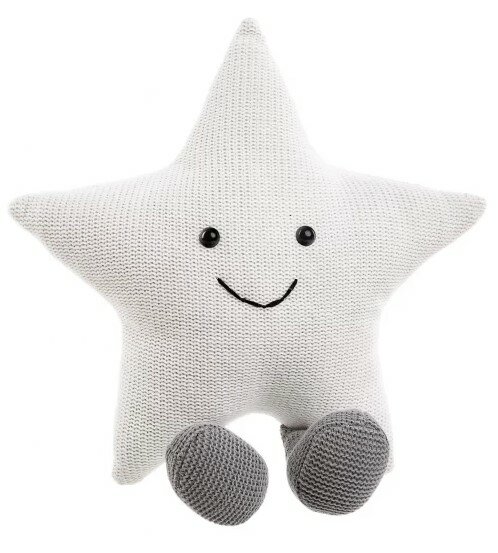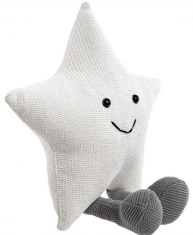 Очаровательная белая звездочка с серыми ножками из коллекции "Knit" так и манит взять ее к себе в качестве талисмана удачи. У нее черные глазки-пуговки, милая улыбка и смешные свисающие ножки. Звездочка связана из качественной хлопковой нити и очень приятна на ощупь. За счет нейтральных пастельных тонов, зведочка прекрасно впишется в любой интерьеh, в особенности, спальной комнаты. Также она может стать любимой ночной игрушкой малышу. Мягкая игрушка звездочка упакована в плотную прозрачную подарочную сумочку с логотипом. Высота игрушки без ножек - 25 см. Игрушку можно стирать в щадящем режиме при температуре не более 30' и низких оборотах. Игрушка изготовлена из безопасных гипоаллергенных материалов. Товар сертифицирован.