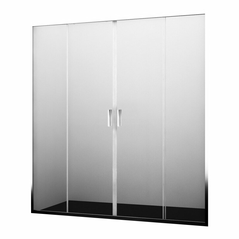 Закаленное прозрачное стекло 6 мм. Раздвижной механизм из сплава металлов. Анодированный алюминиевый профиль 32 мм. Ручки дверей из алюминия и ABS-пластика. Регулирующий профиль до 15 мм. Механизм легкой чистки. Силиконовый уплотнитель дверей с магнитным замком. Цвет профиля: серебристый. Силиконовые уплотнители. Толщина профиля 23 мм