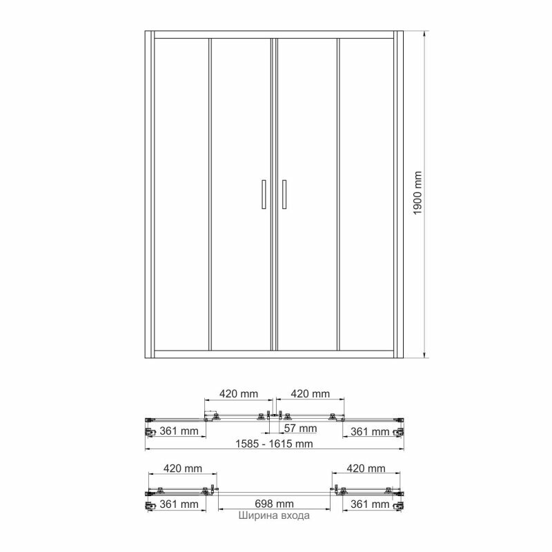 | Регулировка ширины | (1585-1615)x1900 |
