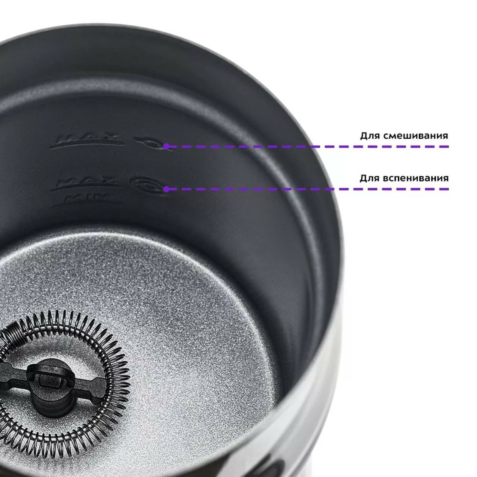 Внутри капучинатора нанесена мерная шкала. Наливайте молоко в капучинатор, не превышая верхней отметки «MAX» (250 мл) в режиме смешивания и нижней отметки «MAX» (120 мл) – в режиме вспенивания