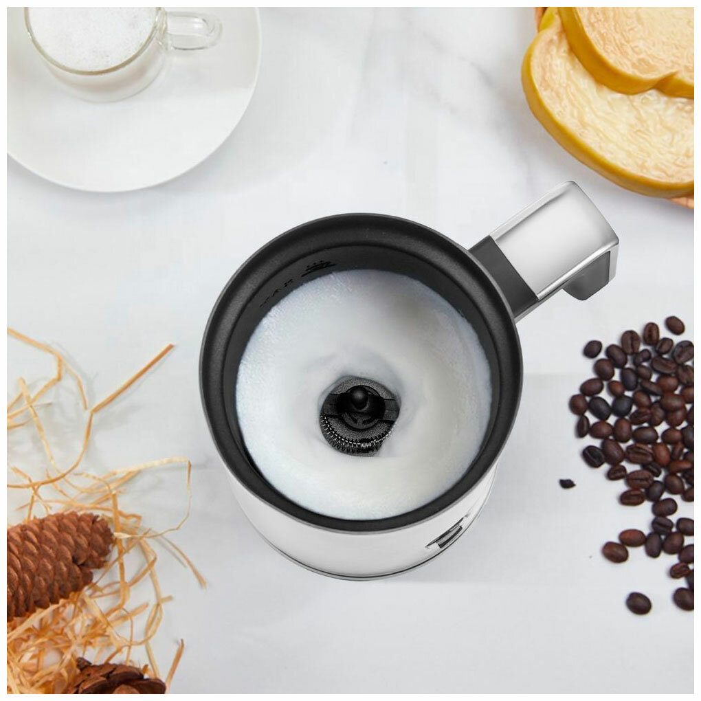 Стенки капучинатора не будут горячими после окончания работы из-за особенности конструкции. Внутри указаны уровни максимального заливания напитков. Благодаря антипригарному покрытию во время приготовления молоко не пригорит.