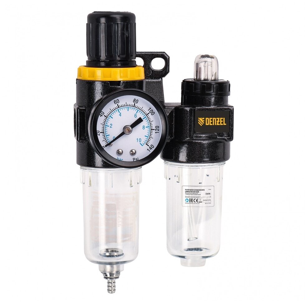 Сервис сравнения цен СкидкаГИД предлагает сравнить цены на товар «Блок подготовки воздуха регулятор-фильтр-лубрикатор Denzel FLR1500 10 бар 1500 л/мин 1/4" 57469»