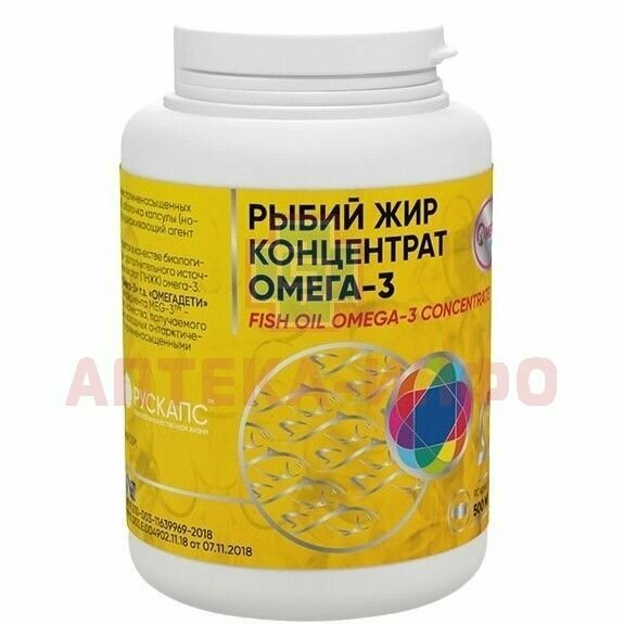 Организм человека не может самостоятельно синтезировать полезные омега-3 полиненасыщенные жирные кислоты, поэтому в рационе обязательно должны присутствовать продукты, эти кислоты содержащие. Таких продуктов не так много. К ним относятся некоторые растительные масла, например, льняное, а также рыбий жир. БАД «Рыбий жир концентрат омега-3» содержит в себе две самые важные незаменимые кислоты: эйкозапентаеновую и докозагексаеновую (общее содержание ПНЖК омега-3 – не менее 60%). Эйкозапентаеновая кислота участвует в формировании: клеточных мембран; образовании гормонов; регулировании воспалительных реакций; активации иммунных клеток; улучшении всасывания жиров и жирорастворимых витаминов в желудочно-кишечном тракте; улучшении мозговой деятельности; подвижности суставов. Докозагексаеновая кислота участвует: в развитии мозга и глаз; нормализации микроциркуляции крови; обладает мембранозащитным, антиатеросклеротическим, антиаритмическим, иммуномодулирующим, противовоспалительным, противоаллергическим, антидепрессантным действием; предотвращает накопление жира в организме. Противопоказания: индивидуальная непереносимость компонентов БАД. Не содержит ГМО.