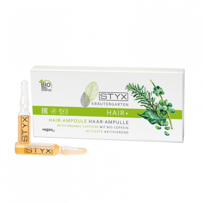 Ампулы с био-кофеином для стимуляции роста и замедления выпадения волос. В среднем, за один курс применения ампул с кофеином (ежедневно, 1 ампула в день, 30 дней) скорость роста волос повышается на 30%.